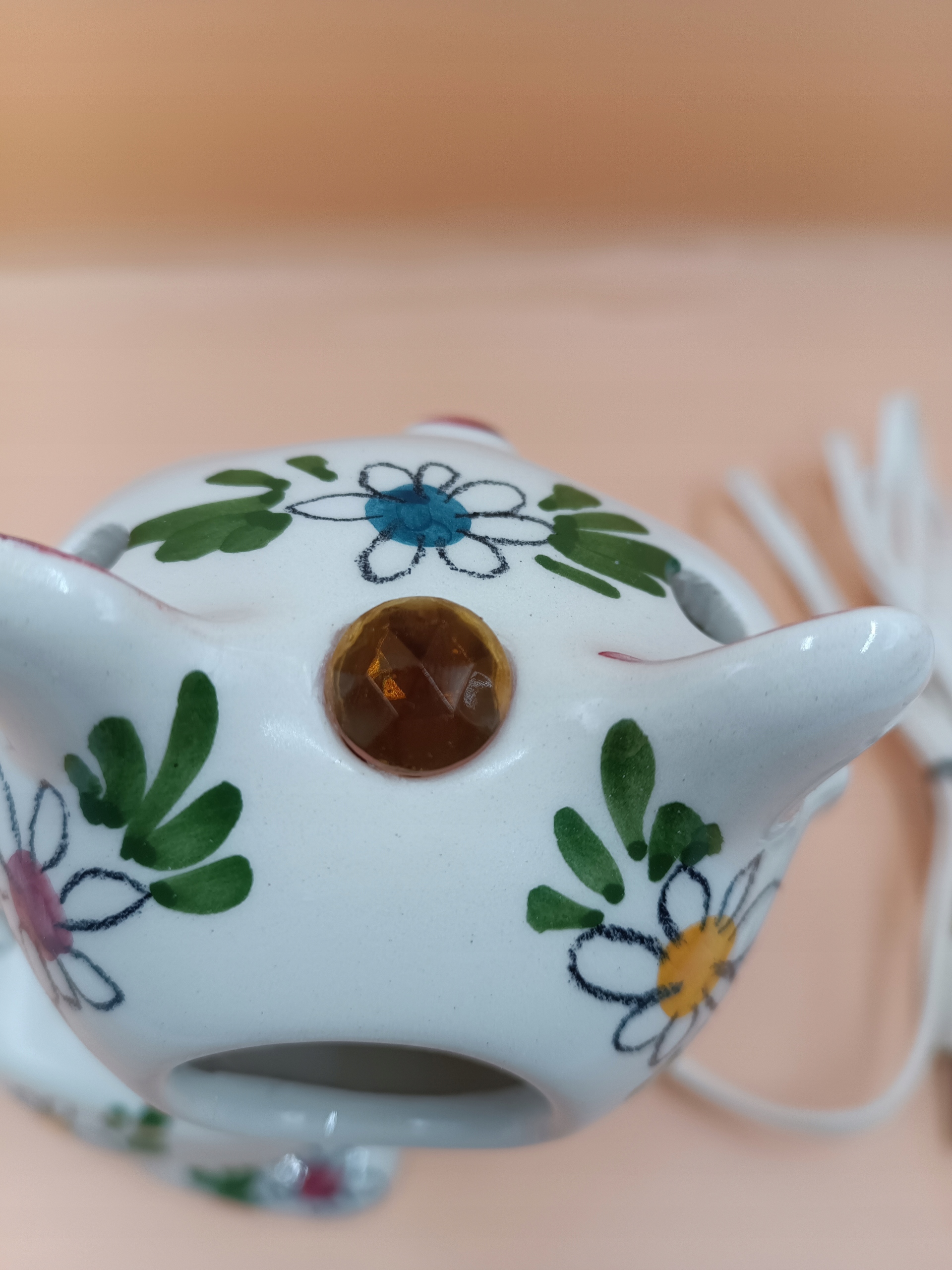 Італійський керамічний нічник у формі кота, з підписом Quadrifoglio Florence, розписаний вручну - це УНІКАЛЬ для колекціонування!
