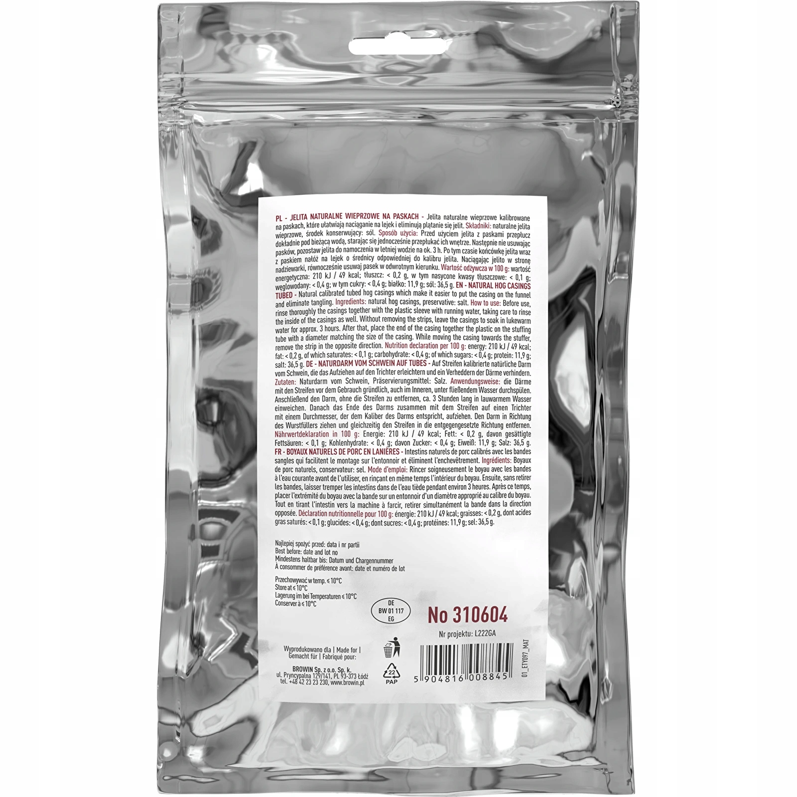 Натуральні свинячі кишки, відкалібровані на стріпсах 28/30 мм - це продукт, високу якість якого Ви оціните з перших хвилин. Завдяки інноваційному способу калібрування нутрощів на смужках вони не пошкоджуються та не сплутуються під час зберігання, їх можна легко та швидко натягнути на воронку для набивання. Стрілки на смужках показують напрямок нанесення на лійку. Отвір на кінці ременів дозволяє міцно захопити слизький ремінець і зсунути його з воронки.