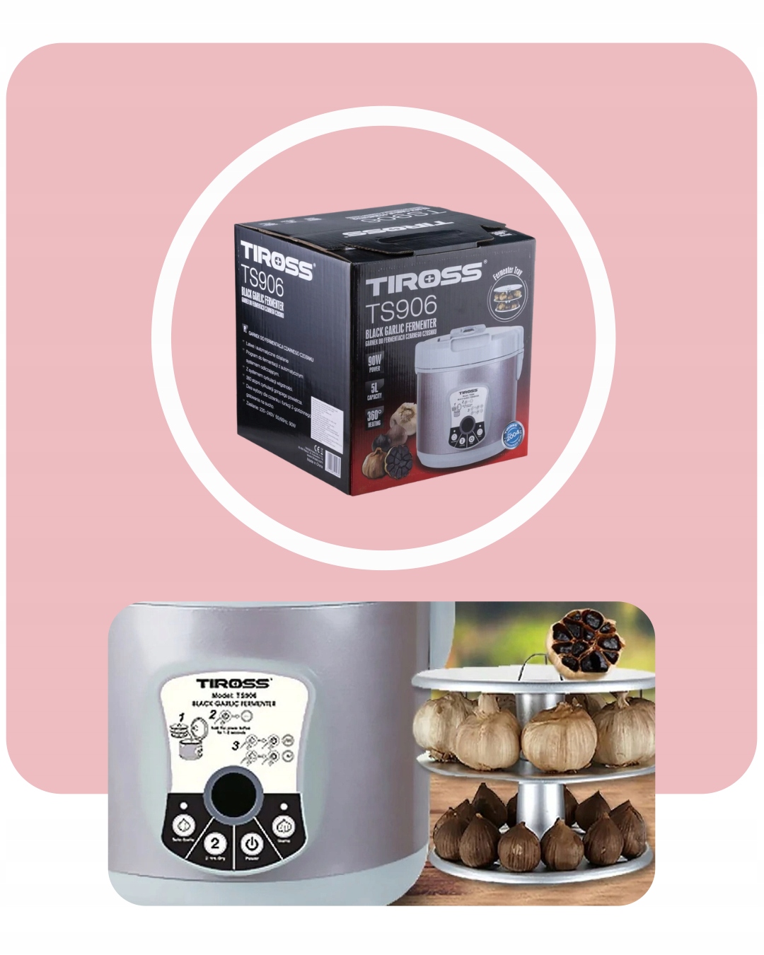 ➡ Завдяки пристрою Tiross, чорний часник може регулярно виготовляти вдома (понад 30-40 циклів на рік) , отримуючи з кожного циклу приблизно 1-1,2 кг чорного часнику (18-22 голова часнику).
