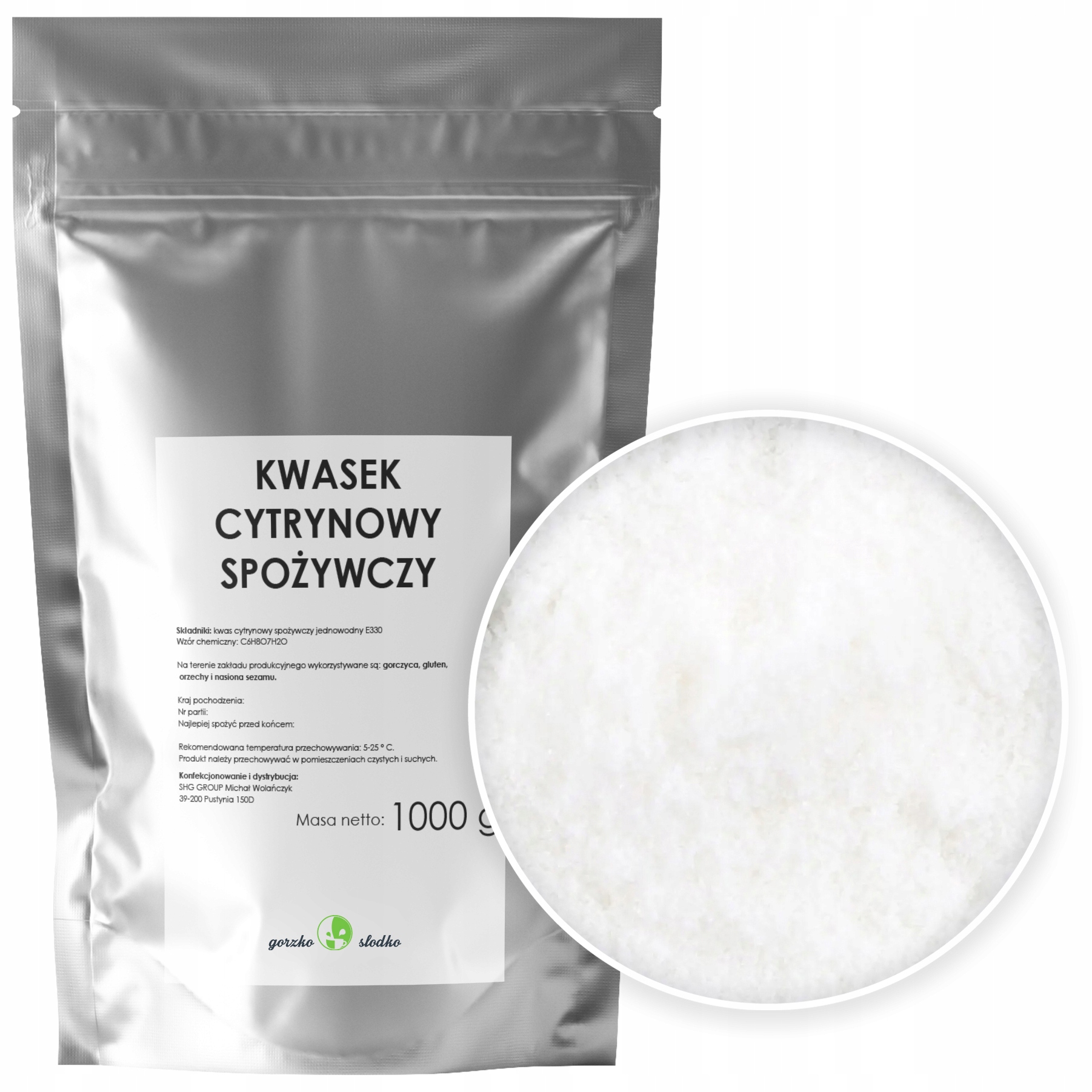 100% моногідрат харчової лимонної кислоти (E330).