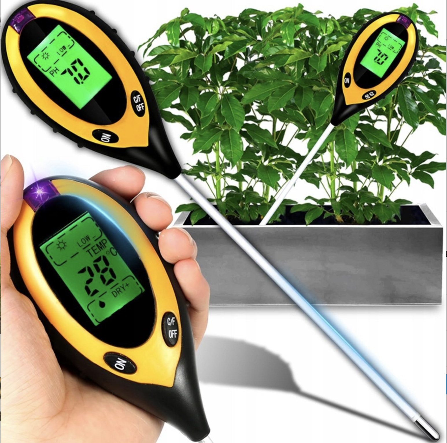 або ваші рослини ростуть повільніше , ніж повинні? Вам цікаво, чи ґрунт у вашому саду має відповідний рН та вологість ? Неправильний рівень рН , недостатня вологість або недостатня кількість світла може спричинити захворювання , гальмування росту та низькі врожаї . Не здогадуйтесь - точно вимірюйте! до висоти.