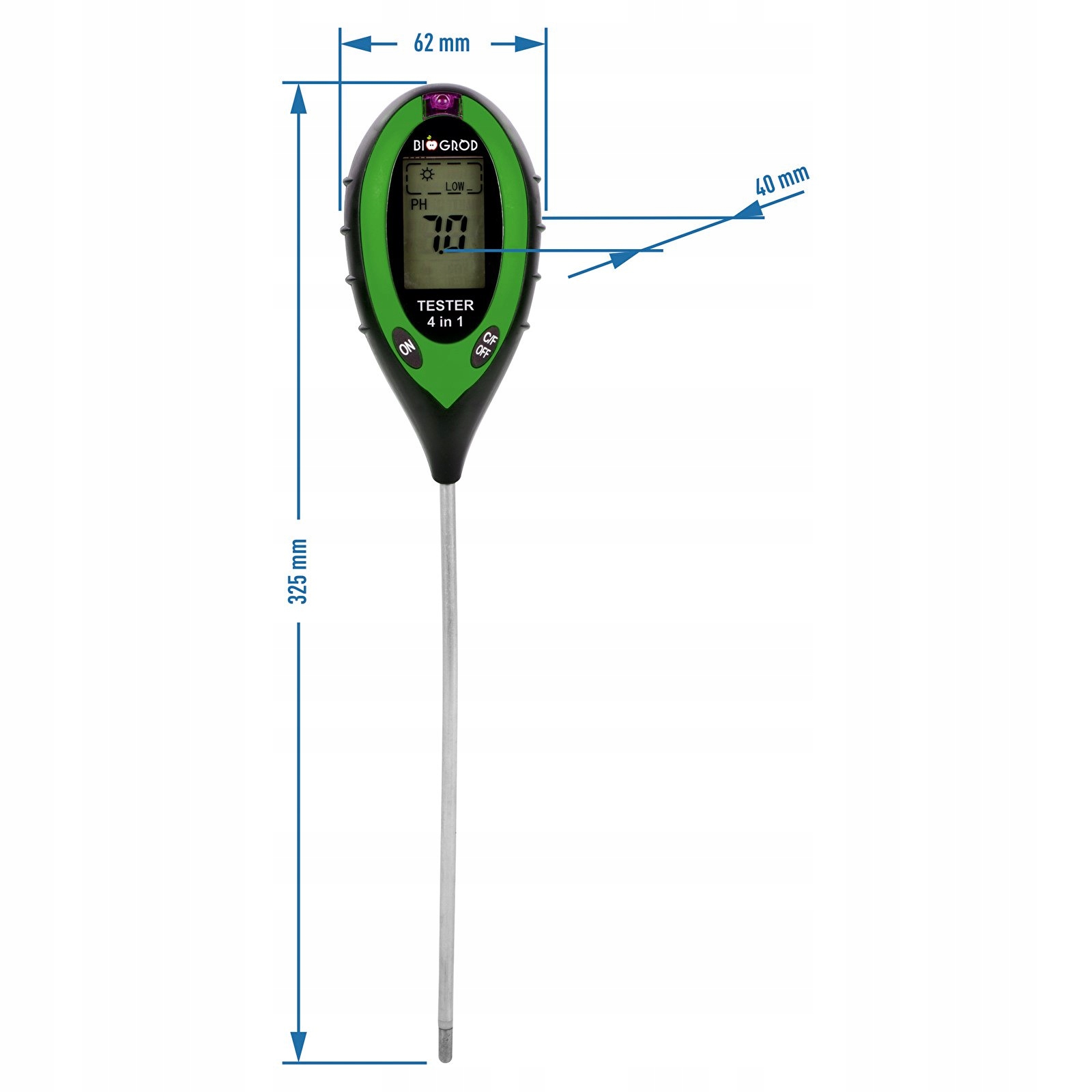 - Чотири функції - електронний тестер дозволить вам перевірити вимірювання рН (кислотності), вологості, температури та сонячного світла ґрунту як на ділянці, так і в домашньому саду, теплиці та на балконі!