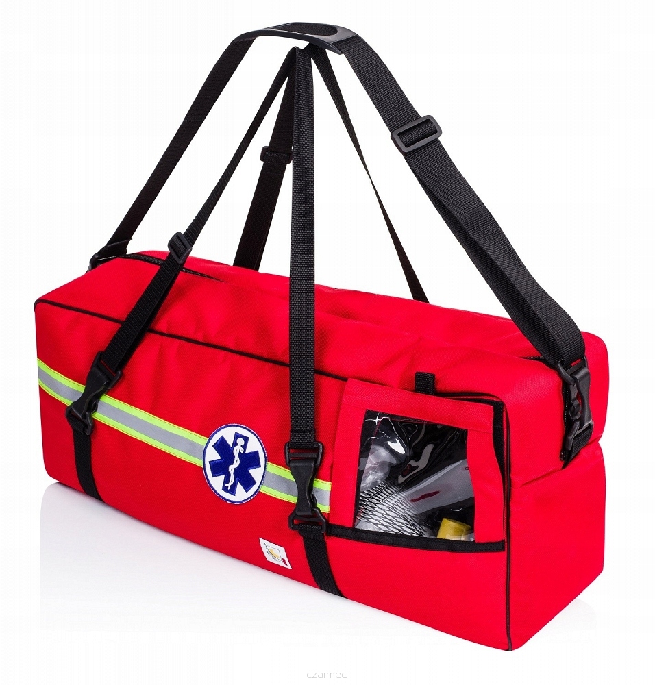 Рятувальний набір з кисневим інгалятором знаходиться в міцній сумці з матеріалу CORDURA з покриттям. Має 6 тримачів для ендотрахеальних трубок. Він оснащений рейками, необхідними для кріплення сумки до носилок, і зручними плечовими лямками, тому сумку можна носити і як рюкзак. Ручка сумки застібається на липучку, що забезпечує надійне та зручне захоплення. Всі елементи, використані для створення сумки, характеризуються відмінними експлуатаційними параметрами, що робить їх стійкими до механічних пошкоджень і погодних умов. Чітко сплановане оснащення аптечки забезпечує сприятливі умови для надання першої допомоги. Кисневий інгалятор рекомендований фельдшерами. Набір у зображеній сумці включає: