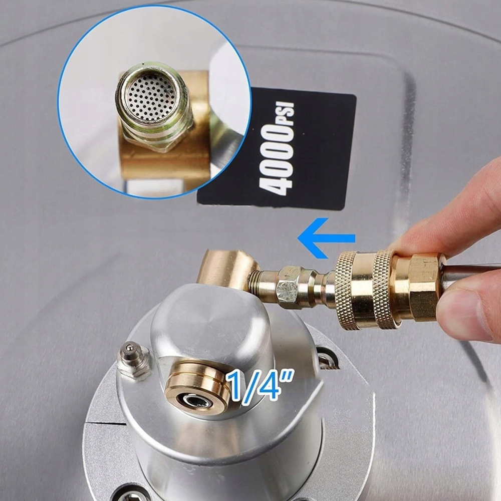 Постійна конструкція з нержавіючої сталі може використовуватися протягом тривалого часу. Пост 1/4 дюйма Легке з'єднання з тиском під тиском шайби або інших швидких з'єднань 6,35 мм. Фільтр вбудований у вхід, щоб запобігти забрудненню. Поверхня для очищення поверхні може використовуватися з більшістю шайб тиску газу.