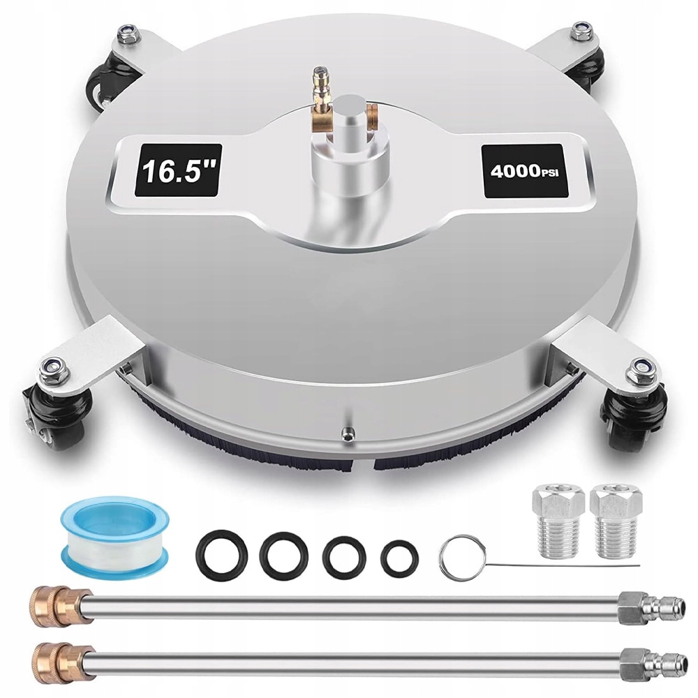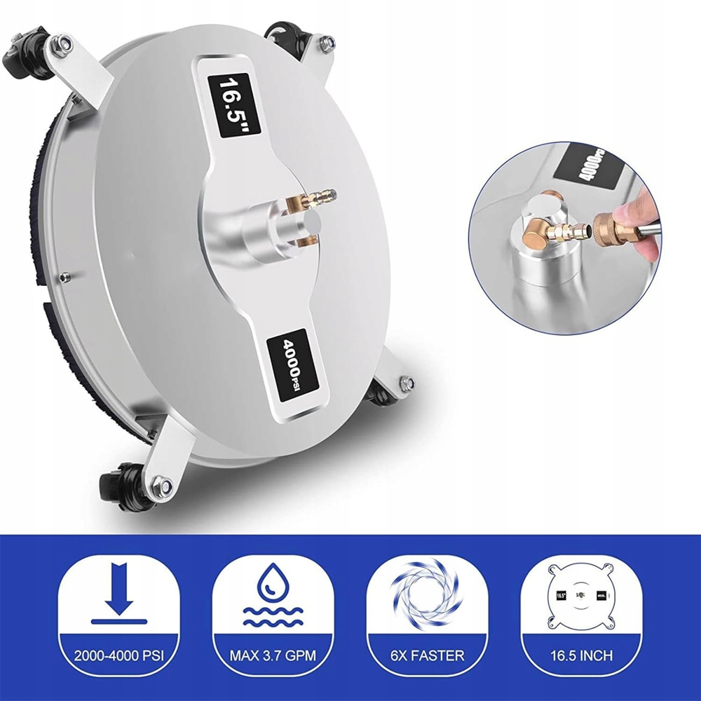 Обладнання для очищення поверхонь для шайбу з газовим та електричним тиском може скоротити час очищення до 60% порівняно зі звичайними насадками. Поверхнева шайба на 44 см обладнана форсунками з подвійним тиском, які швидко обертаються, щоб зламати бруд і бруд, не малюючи і не крохмувавши поверхню. Очищає великі поверхні на 5 разів швидше, ніж стандартна насадка.