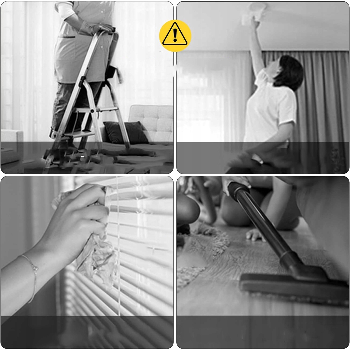Наш телескопічний пилосос може бути розширений до 250 см (довжина з головою чистки кисті). Вищі місця, такі як стелі, жалюзі, стельові вентилятори, дахи, високі підвіконні та павутини, можна очистити. Очищувальна головка з м'якою мікроволокна захищає меблі та стелі від подряпин. Очищає в будь -якій точці будинку, не піднімаючись на драбину. Завдяки додатковому довгому дизайну фронт трохи м'який, це нормально і знадобиться деякий час, щоб звикнути. Будь ласка, зрозумійте! При необхідності його можна скоротити до 38 см для зберігання.