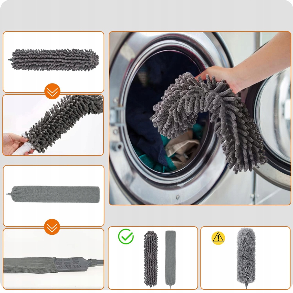 Включає: 1* Телескопічний полюс 38-209 см, 1* Коротка ручка, 3* Замінні головки, 1* Заміна тканини з плоскою чисткою. Мікрофібристська антипіяльна голова для очищення кутів та люстрів з пилу та павутинки. Головка для видалення пилу в Chenille, виготовлена з міцного Chenille, призначена для очищення пилу з автомобілів та вікон. Плоска, довга і гнучка розщеплена шкіра для очищення великих поверхонь від паперового пилу глибоко під ліжками та тріщинами.
