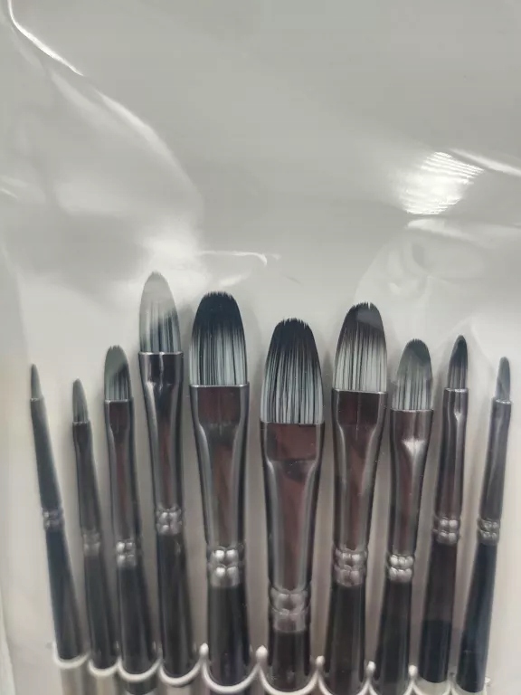 синтетичні щітки ренесансу, призначені для температури та гуашів. Їх також можна використовувати для акрилових фарб. Короткий пофарбований срібний -лак -вал, нікельські теги та синтетичні, двоколеної нейлонової щетини. Широкий асортимент розмірів дозволить правильно вибрати розмір пензля для призначеної роботи. Чорні та сірі щетини характеризуються еластичністю та точністю. Для того, щоб щітки тривалий час зберігали свою форму та якість, слід використовувати відповідні підготовки до догляду та очищення. Набір включає 10 штук пензлів форми котячої мови в розмірах, послідовно: від 1 до 10.