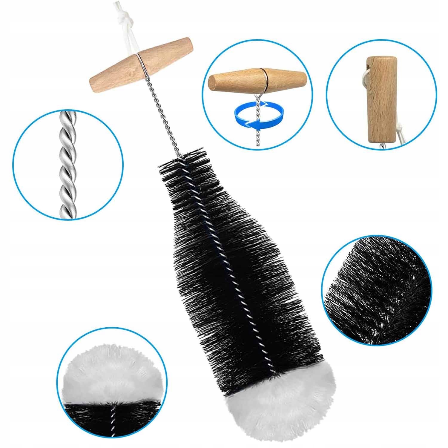 ✔ Служба ручки пензлика досягає дна пляшки і очищає всі внутрішні ділянки, а його форма дозволяє видалити плями з плечей і днищ.