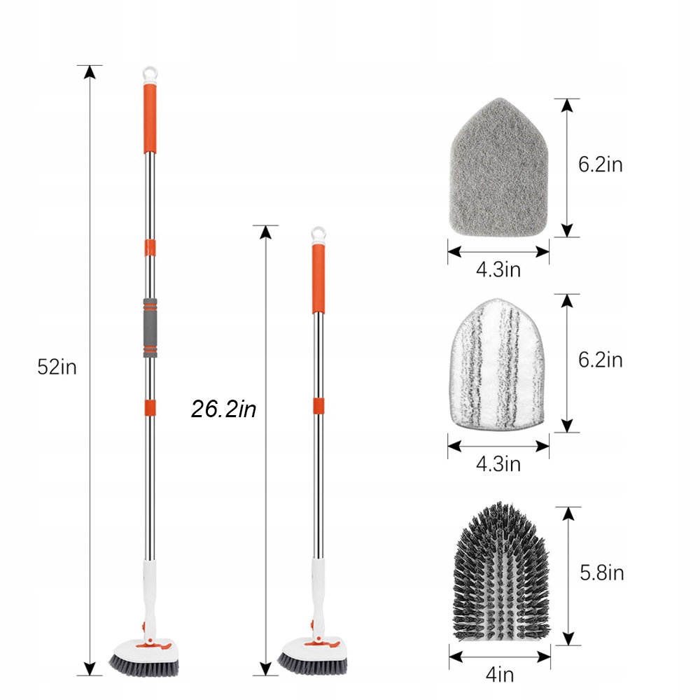 🧹 【3 в 1, знімна головка пензля】 містить три різні, високоякісні чистячі головки - щітки з щетиною, вичісування губки та шайби з мікрофібри. Підходить для підлоги, ванних кімнат, ванн, стін, скла та більшості домашніх справ, пов’язаних із прибиранням.