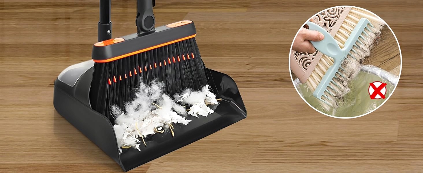 Домашня мітла побудувала -в зуби гребінця, які гарантують, що бруд підмітається у вертикальну запаморочення. Вам не доведеться турбуватися про те, щоб покутувати руки, збирати волосся (ваш або коханий собака/кіт) та інший бруд.