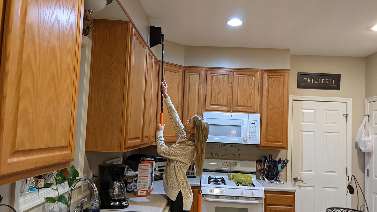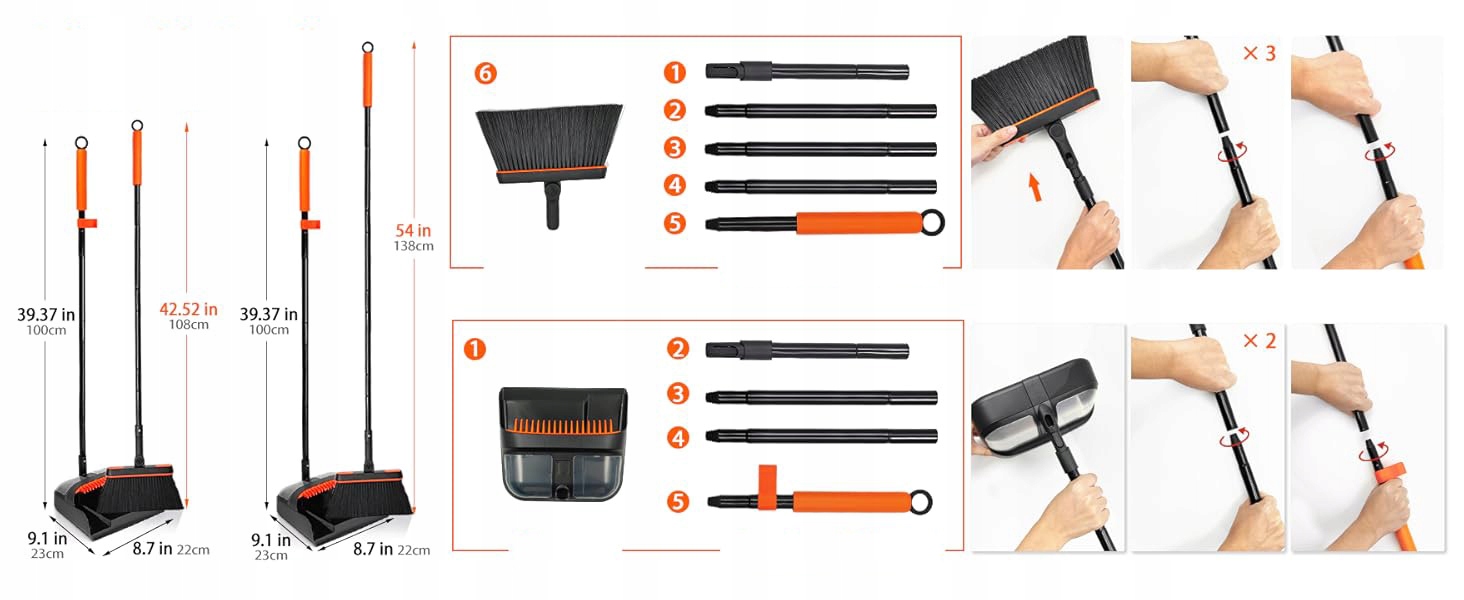 Це покращене подряпина з довгою ручкою може бути розширена, що дозволяє не лише зручно стояти прямо, щоб підмітати замість згинання замість нахилу, але й підмітати пил з високих місць або глибоких кутів.