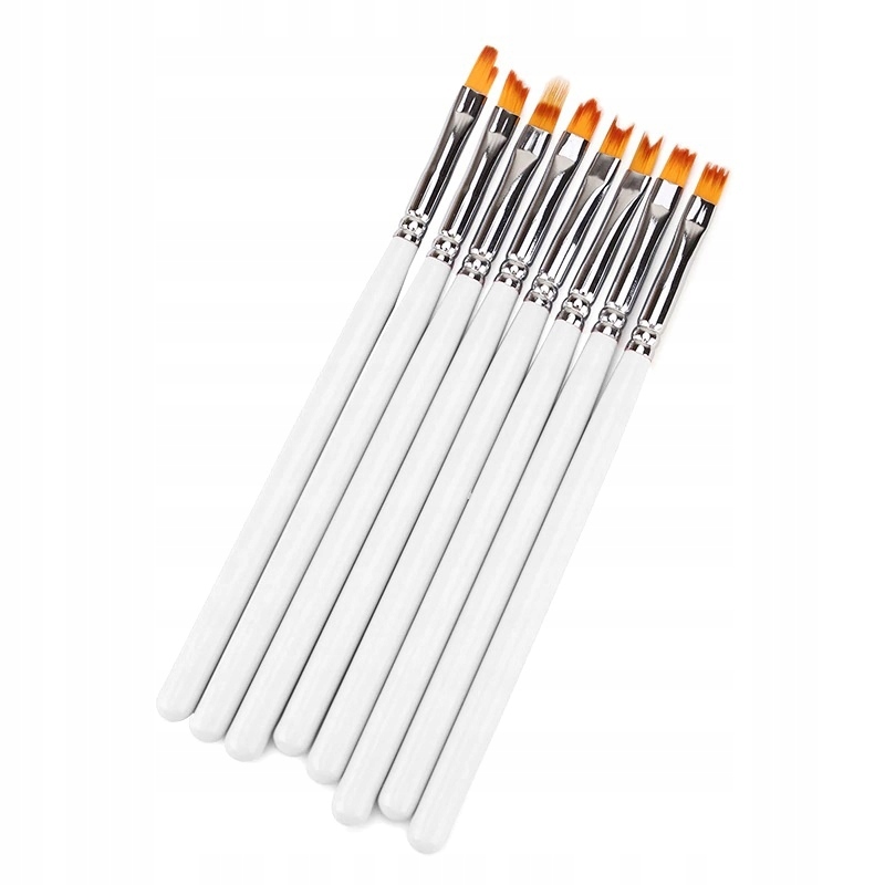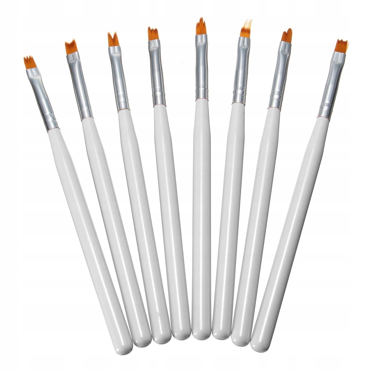 Кисті для декору та стайлінгу нігтів. Набір з 8 білих