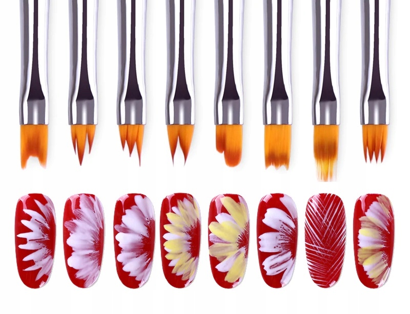 Високоякісний набір із 8 пензлів для малювання нігтів.