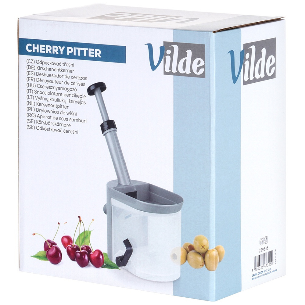 Практична ямка для кісточок легко допоможе видалити кісточки з вишні, черешні та оливок. Він займає мало місця і зручний у використанні. Корисно при приготуванні фруктового торта, печива, варення. Легко підтримувати в чистоті. Оригінальний продукт Vilde. Вироблено відповідно до європейських стандартів.
