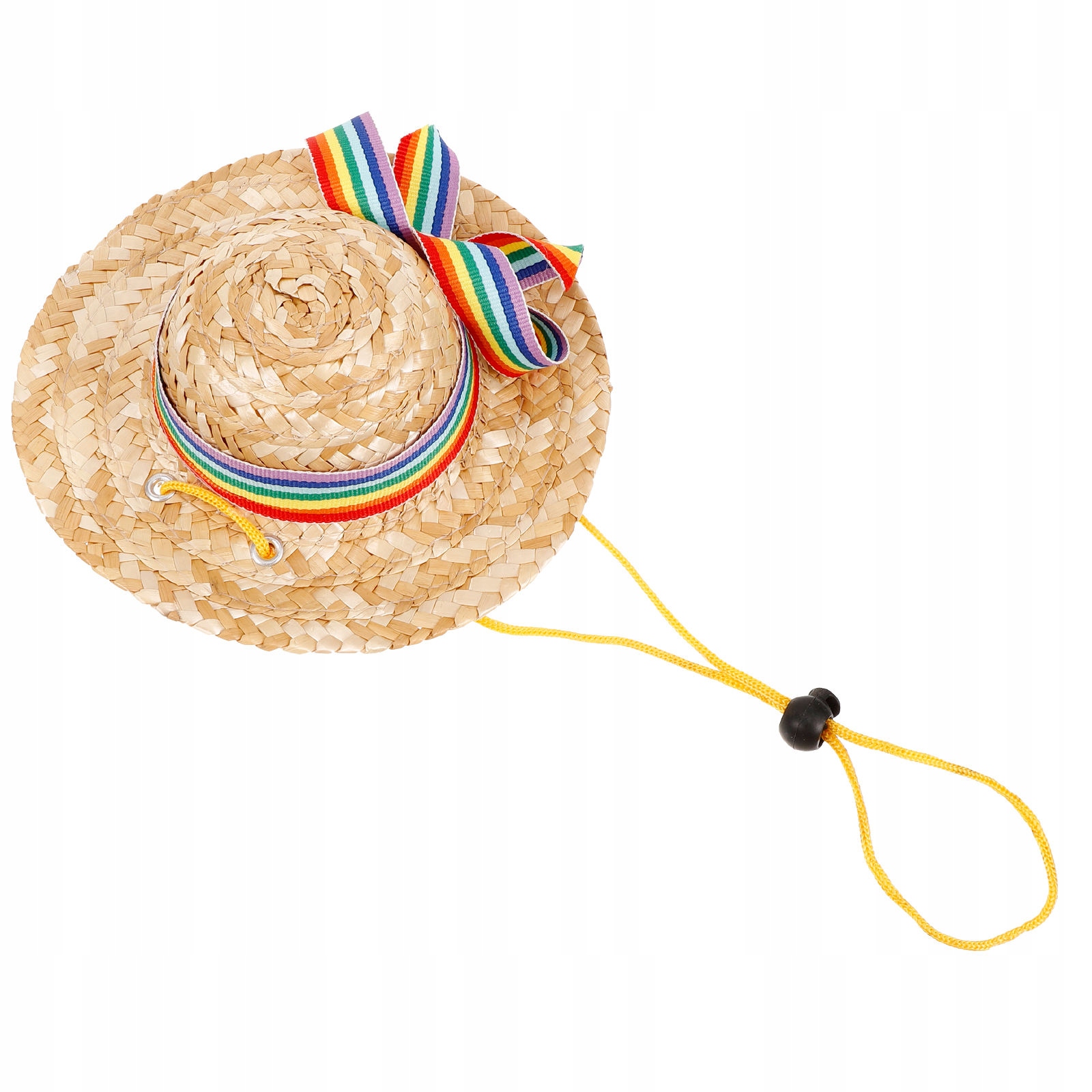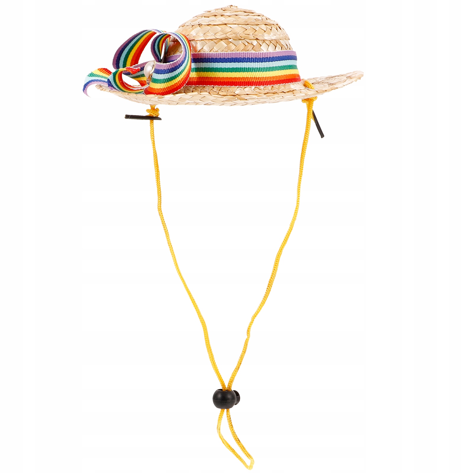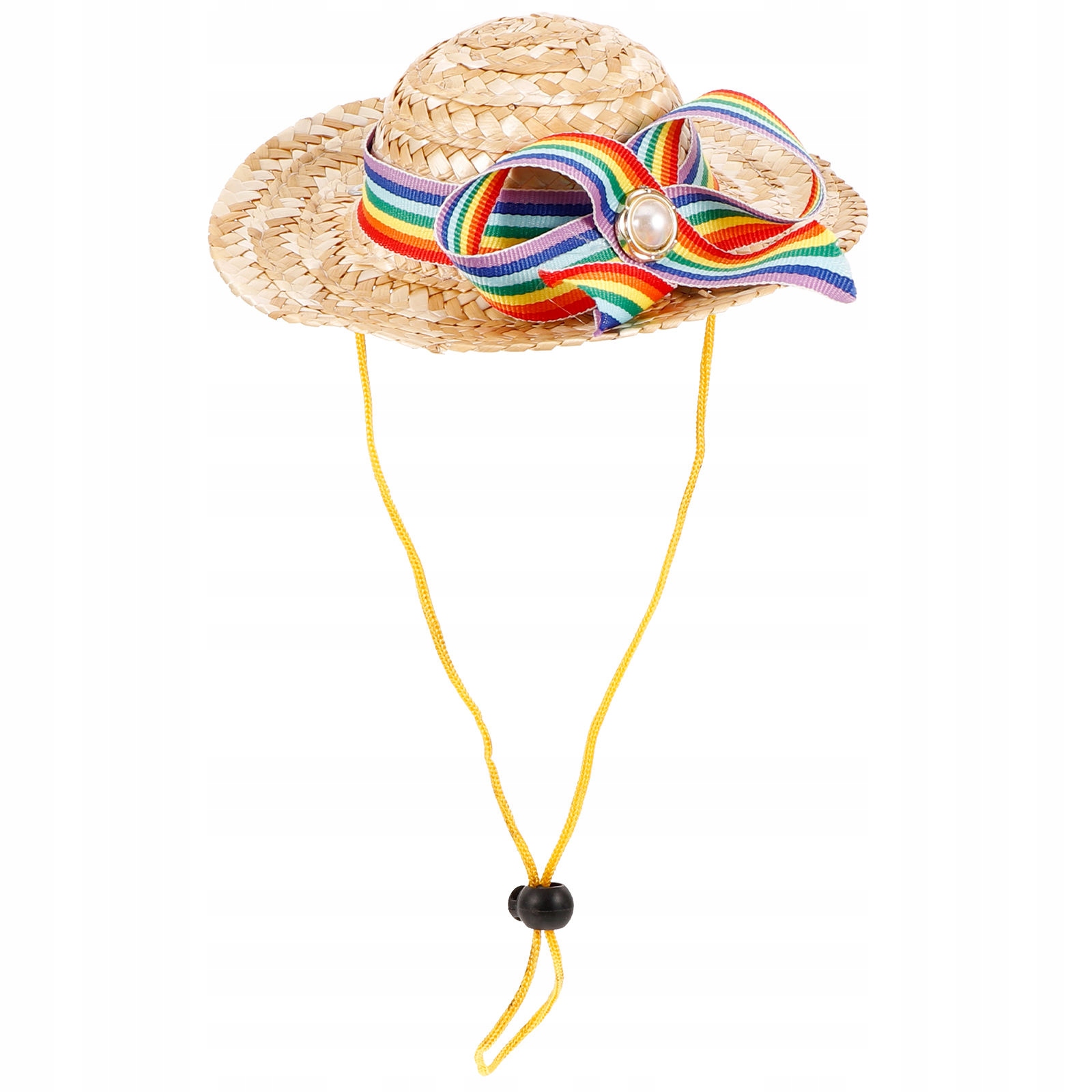 КІТ СОБАКА ПЛЕТЕНИЙ СОЛОМ'ЯНИЙ КАПЕЛЮХ РАЙДУЖНИЙ КАПЕЛЮХ З СТРІЧКОЮ ЦУЦЕНЯ СОЛОМ'ЯНИЙ КАПЕЛЮХ ЛІТО