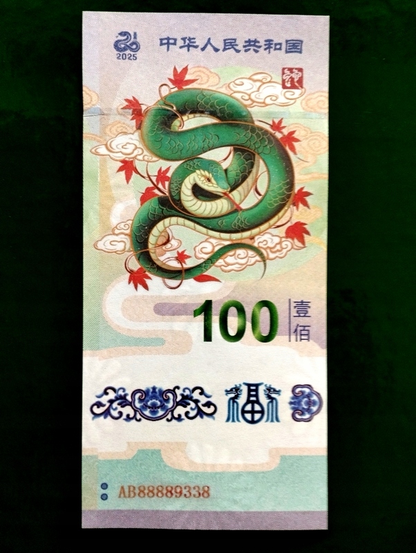 Китай - 100 юанів 2025 UNC - Змія рік, прекрасний !!!
