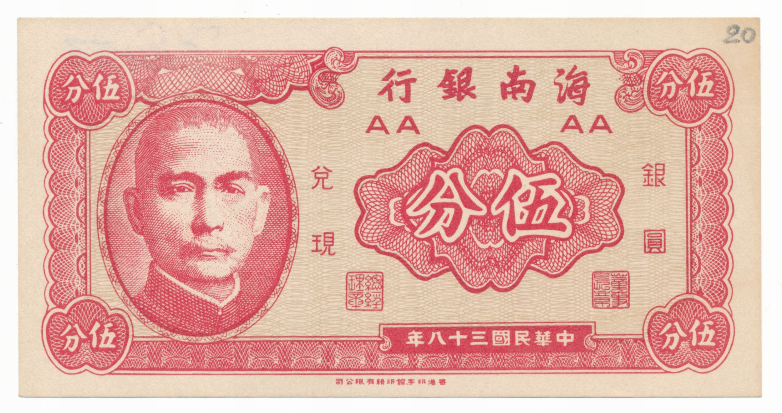 Китай, 5 центів 1949, Хайнань, ст. 1