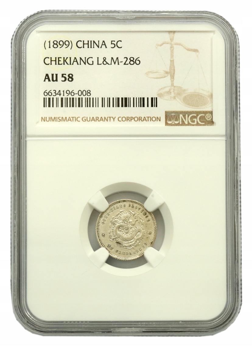 Китай, Чецзян, 5 центів, (1899) NGC AU58, L&M-286