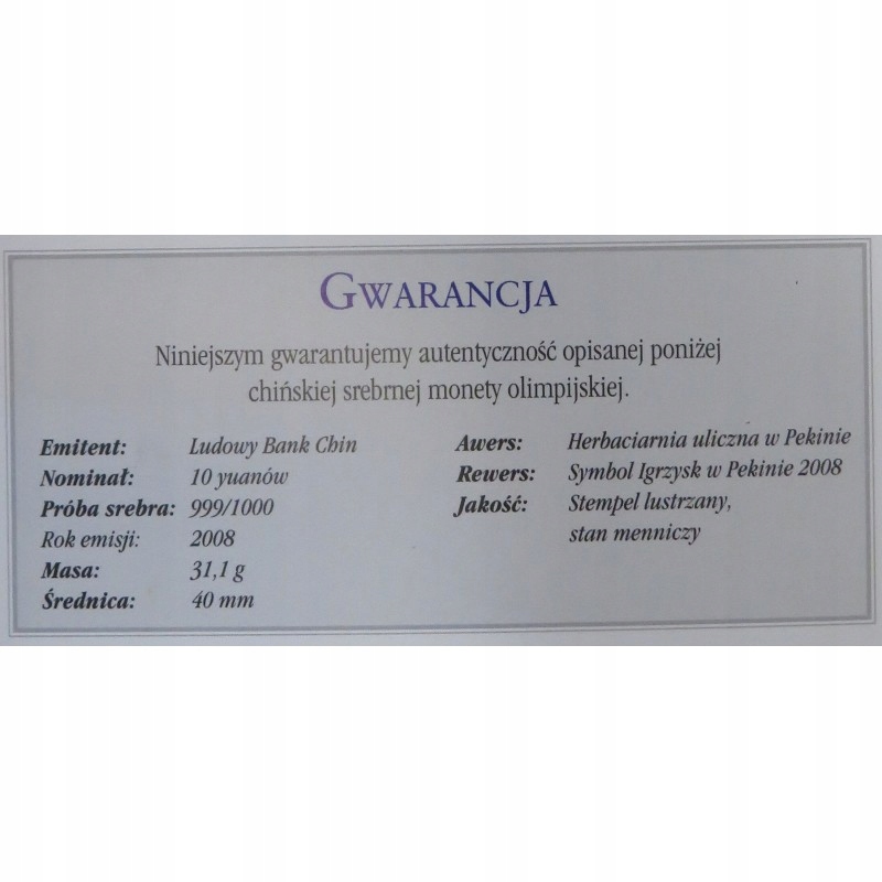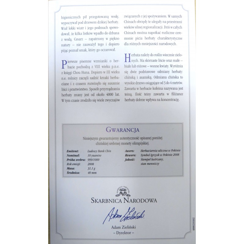 Китай 10 юанів 2008 "Чайний будиночок" 1 унція срібла Ag 999, сертифікат