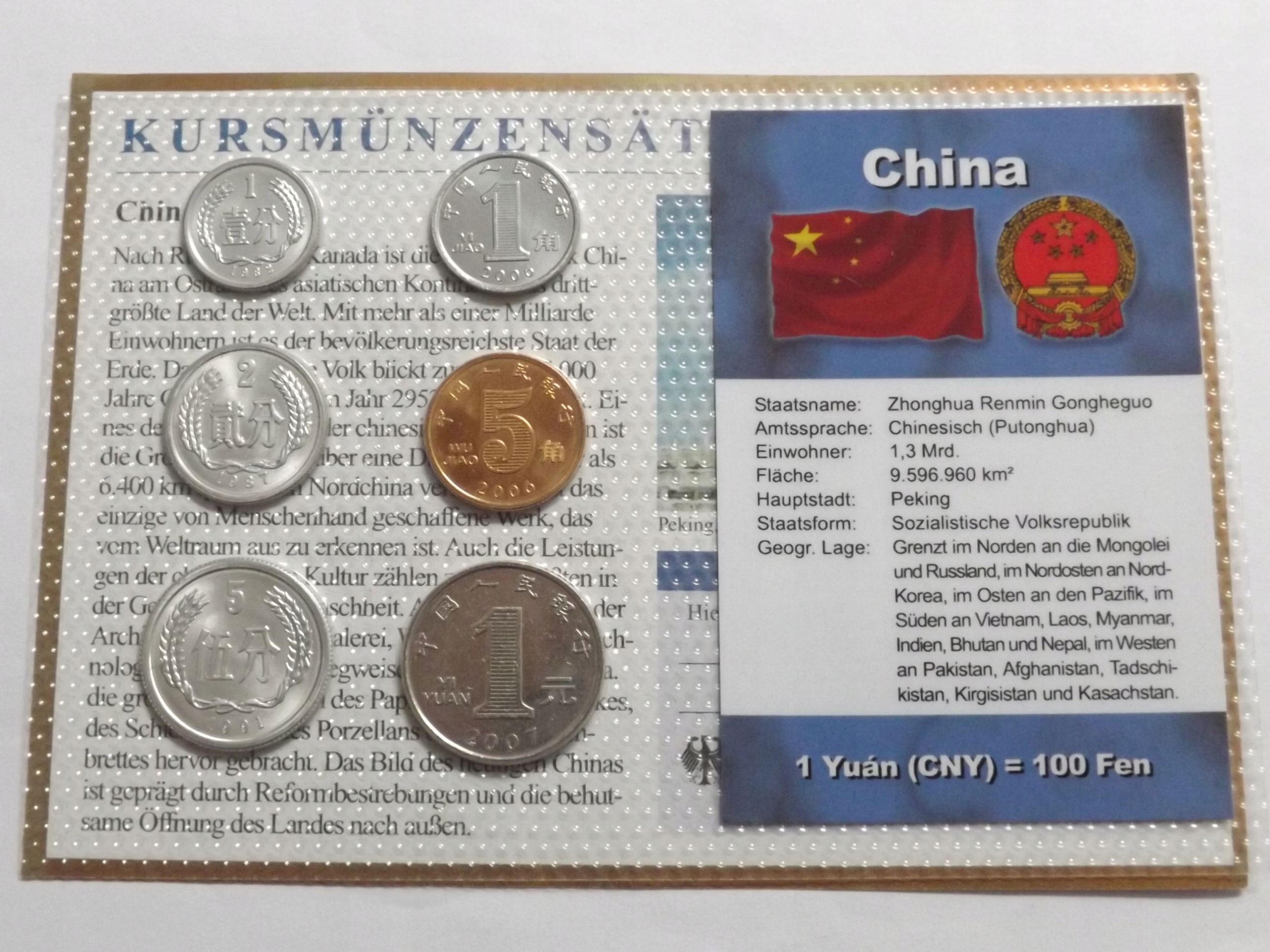 Китай 1982-2007 Набір обігових монет, блістер 6 x UNC