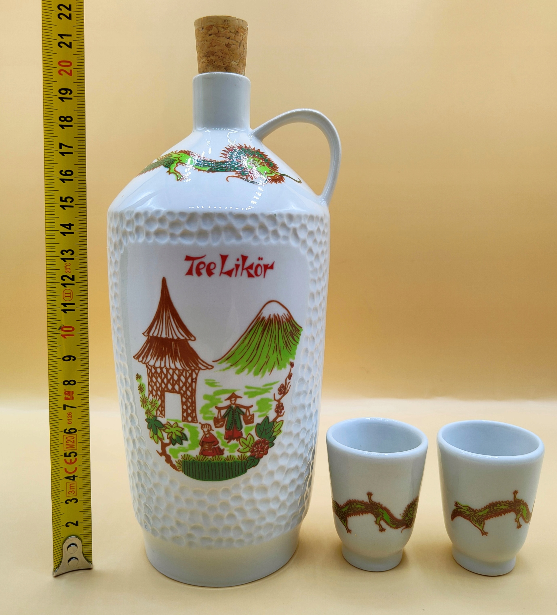 старовинні порцелянові підписані красива пляшка китайська пляшка дракона + дві оригінальні окуляри.