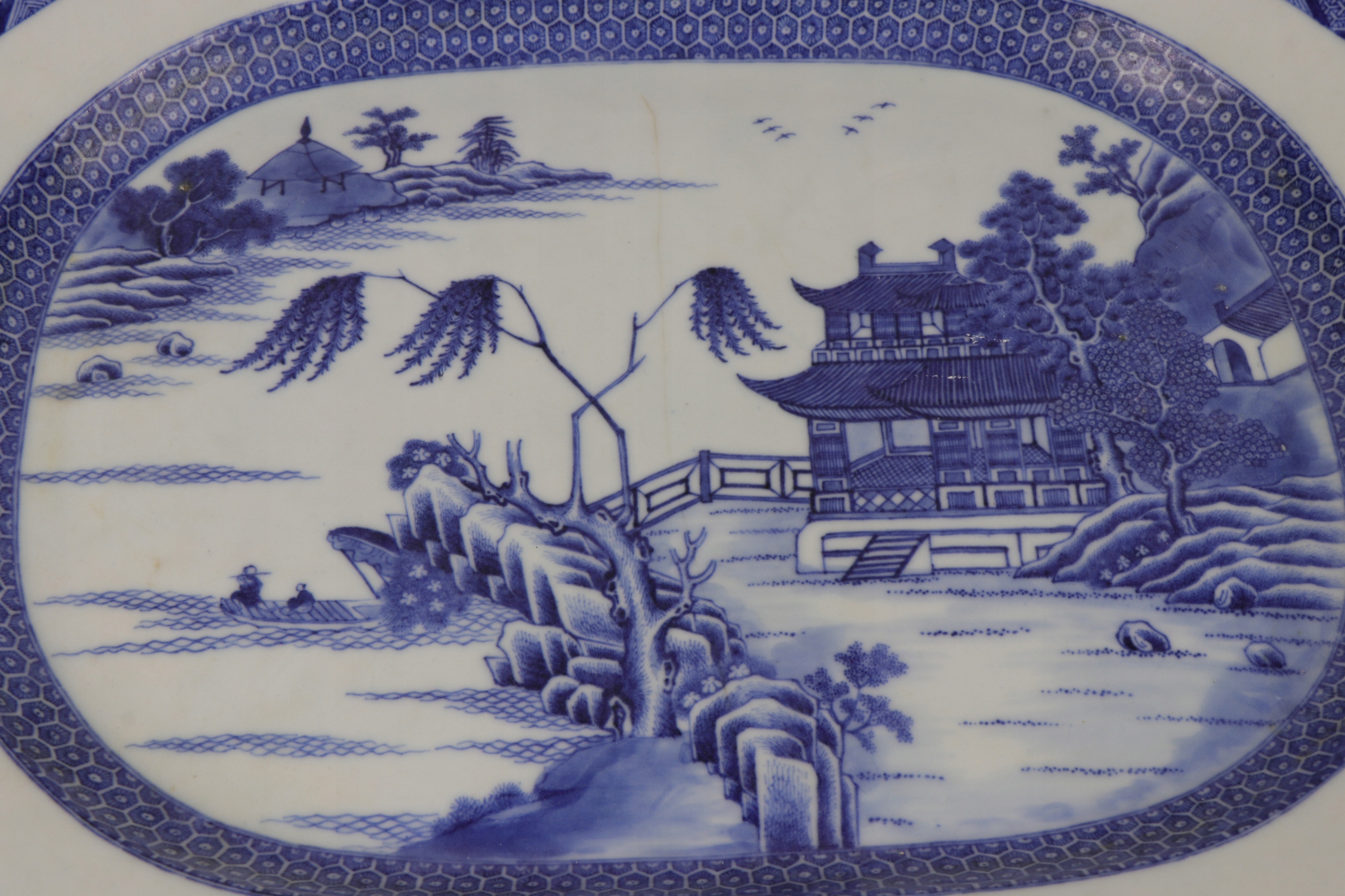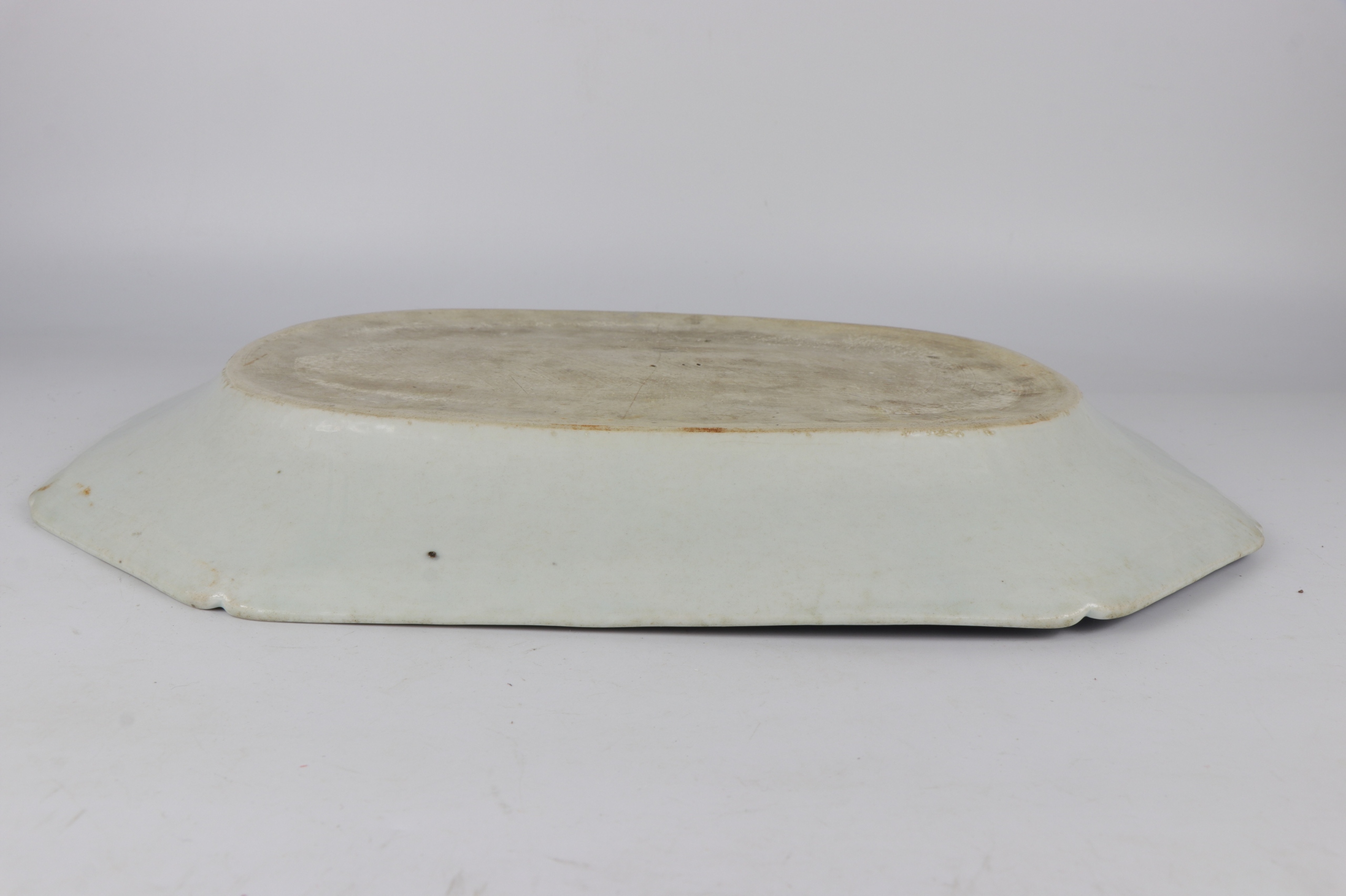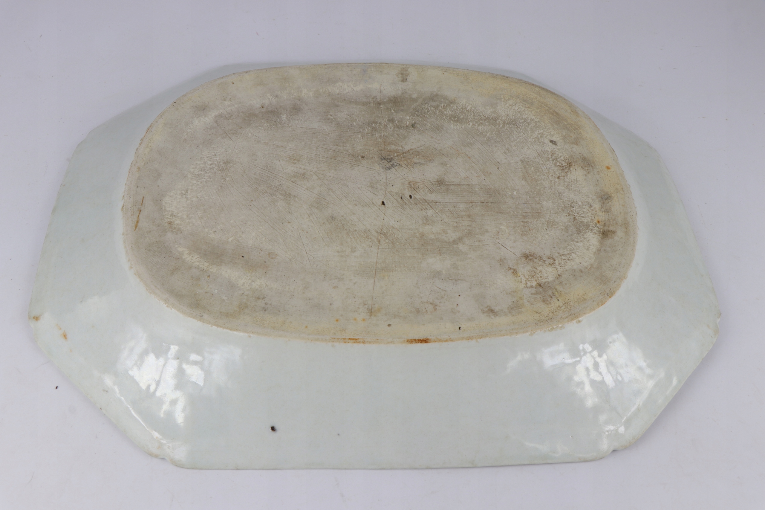 Цікаве, дуже велике китайське блюдо, прикрашене ручним розписом з кобальтового орнаменту. Тарілка з характерною плоскою неглазурованою основою. Табличка 18 століття періоду Цяньлун.