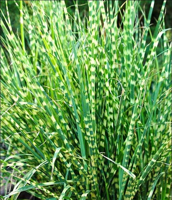 китайський viscanthus 'Zebrinus' (miscanthus sinensis 'Zebrinus') -це унікальна, довготерміна декоративна трава з смугастими листям , які створюють щільні, укладені вентилятори. Характерні поперечні смуги-легкі жовті на тлі зелені-Give-це екзотичний, унікальний вигляд.
