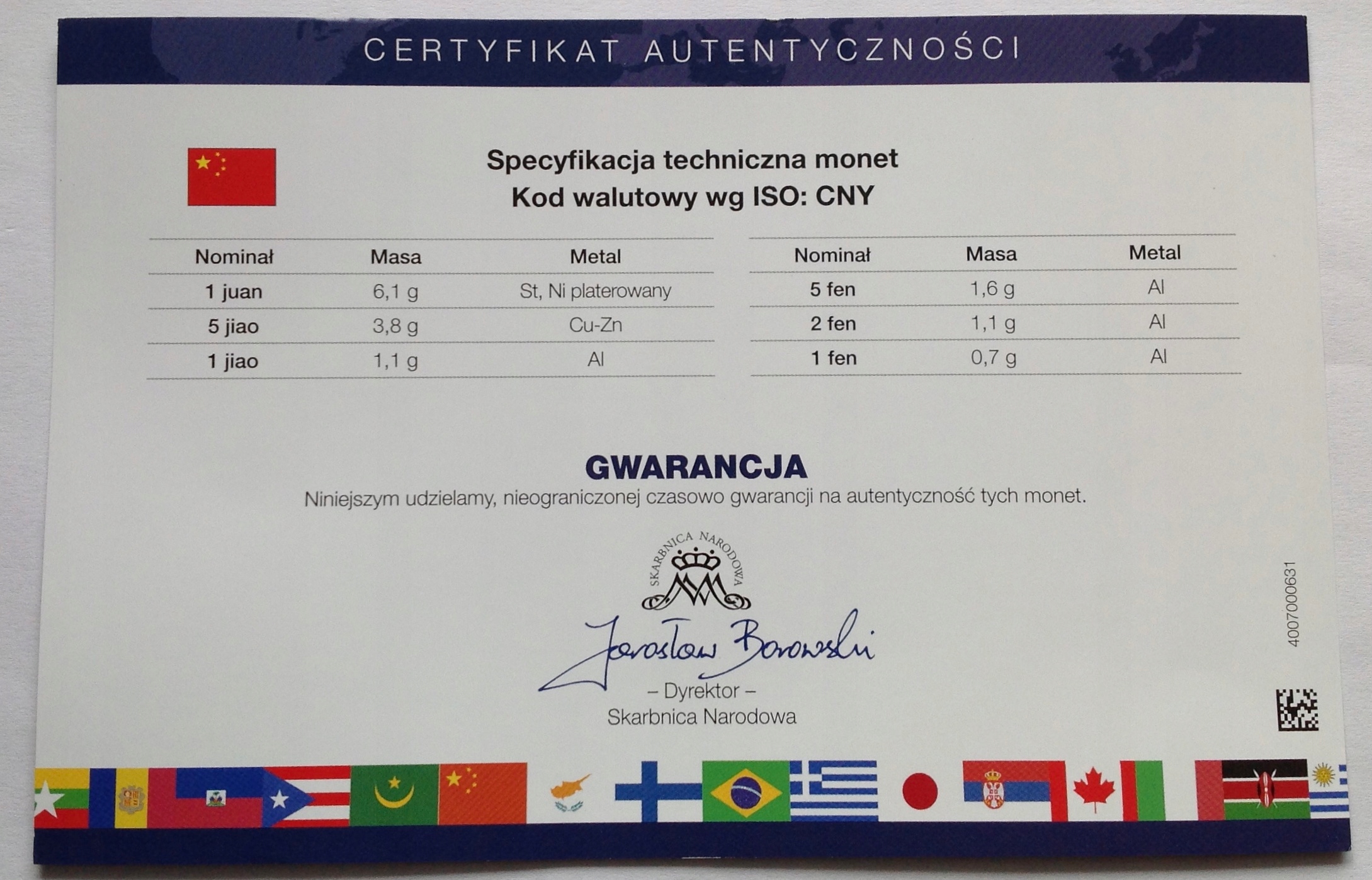 Просматривая «Китайский набор циркуляционных монет в UNC Blister», вы можете быть уверены, что данный товар из каталога «[rubrica_name]» будет доставлен из Польши и проверен на целостность. В цене товара, указанной на сайте, учтена доставка из Польши. Внимание!!! Товары для Евросоюза, согласно законодательству стран Евросоюза, могут отличаться упаковкой или наполнением.