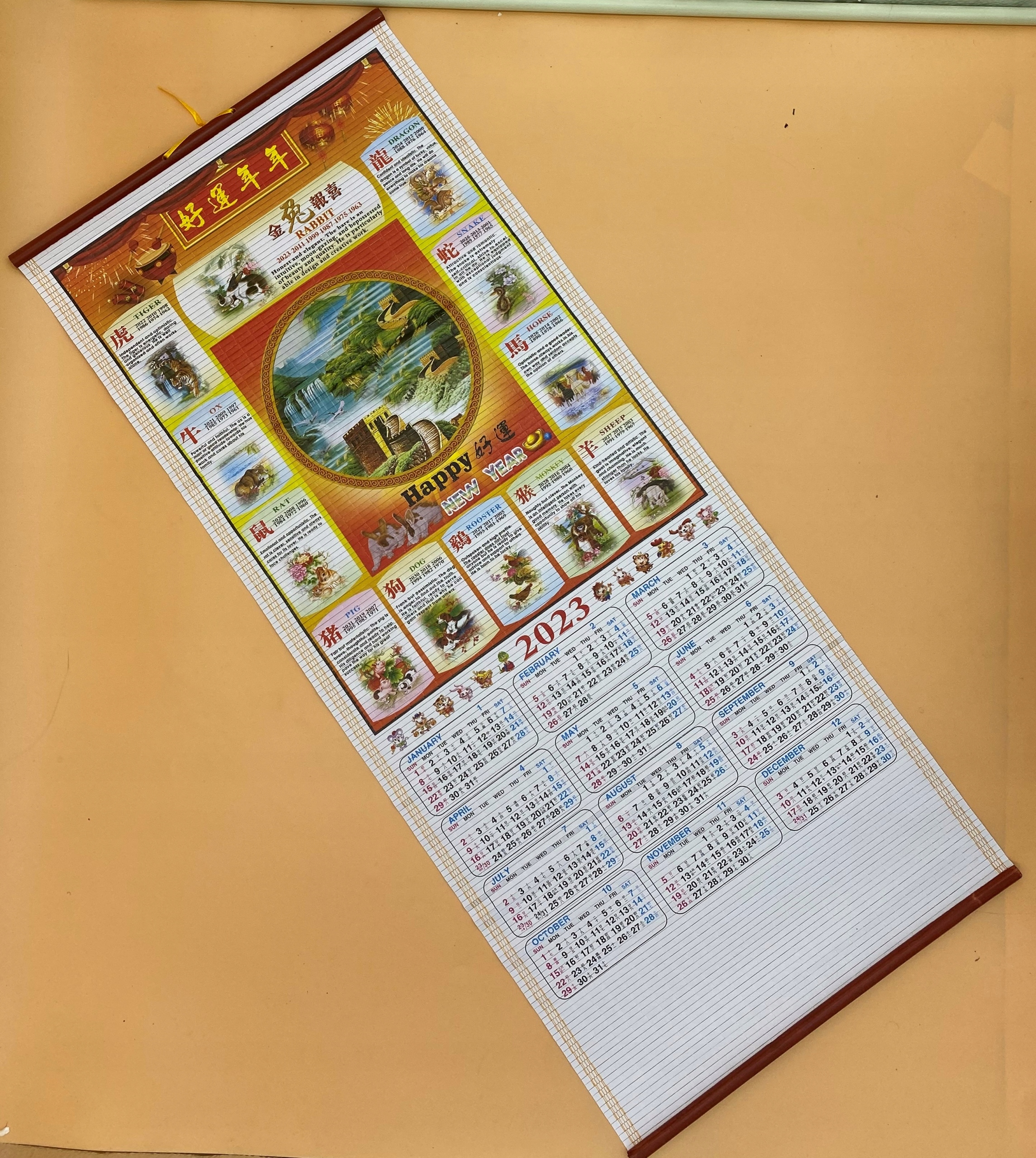 Китайський настінний очеретяний КАЛЕНДАР НА ЗНАКИ 2023 РОКУ