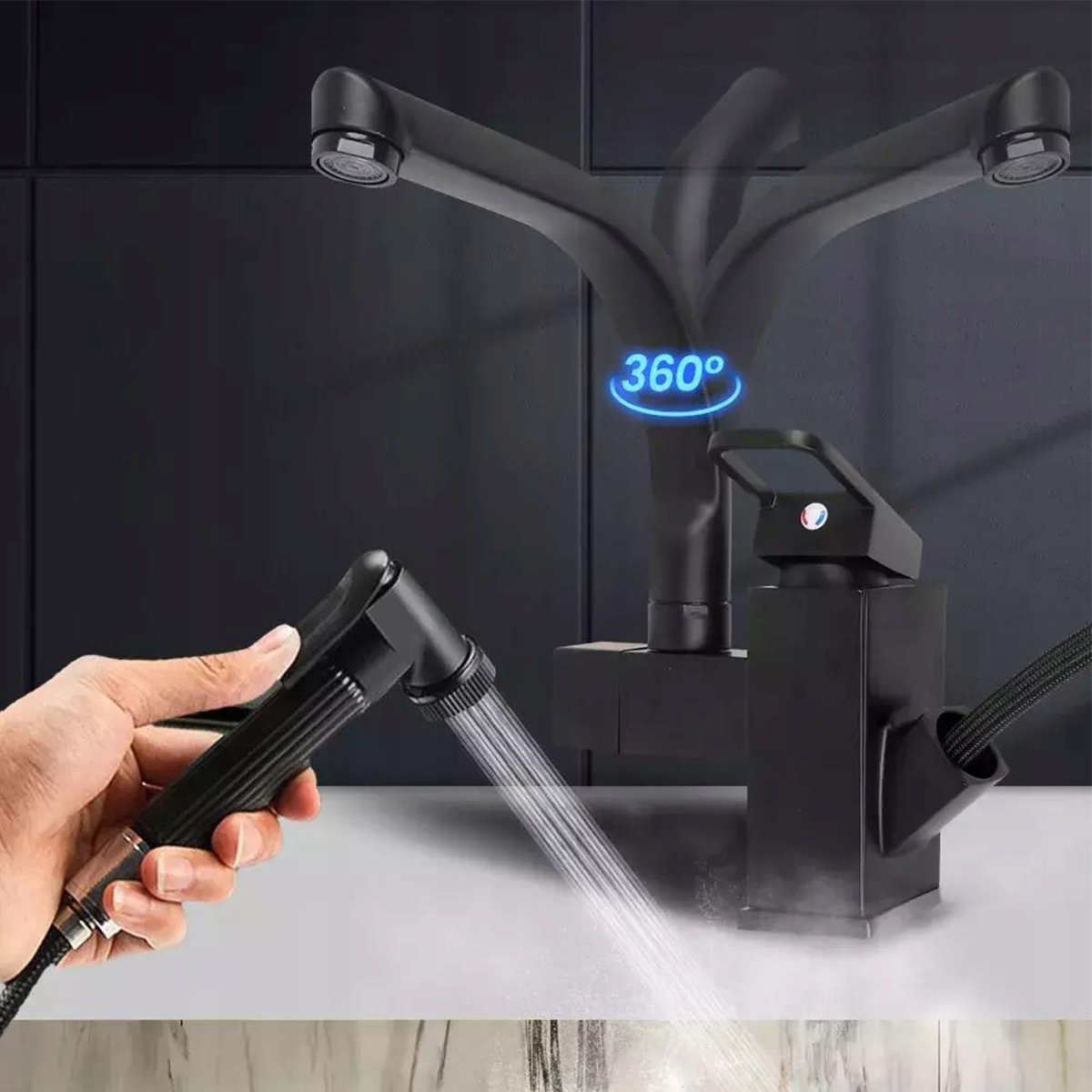 KITCHEN Змішувач для раковини, гнучкий, гнучкий вилив, змішувач 360°, чорний
