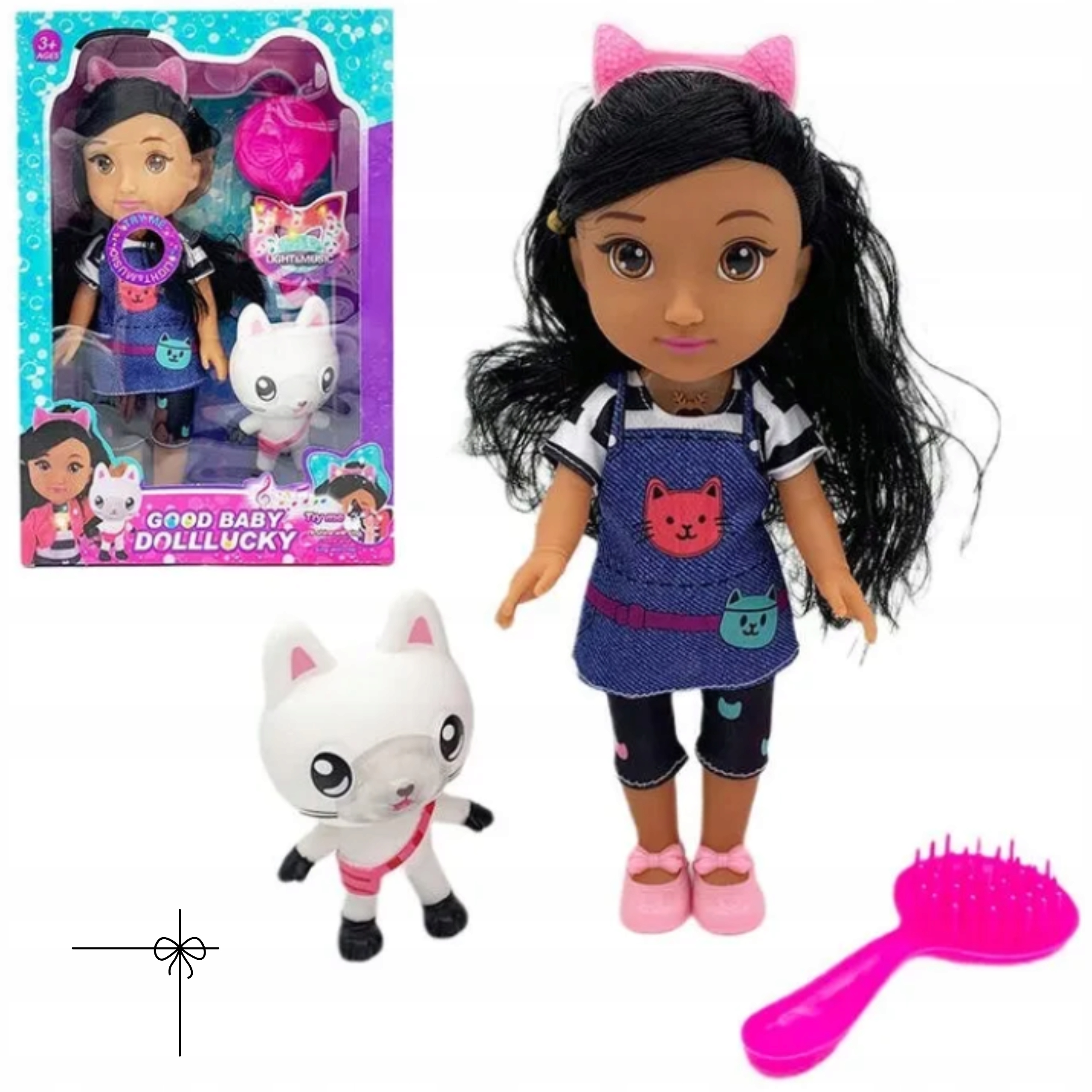 Ця унікальна лялька Doll Lucky з кошеням характеризується не тільки прекрасним виконанням і увагою до кожної деталі, але й найвищою якістю інтерактивних функцій. Активує англомовну пісню «Hej, Gabbi» та ефектні світлові ефекти, які створюють чарівну атмосферу та стимулюють сенсорний розвиток маленьких користувачів.
