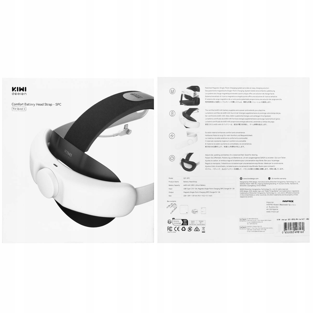 Дизайн Kiwi | Жорсткий регульований ремінь + акумулятор 6400 мАг для Oculus Meta Quest 3/3s