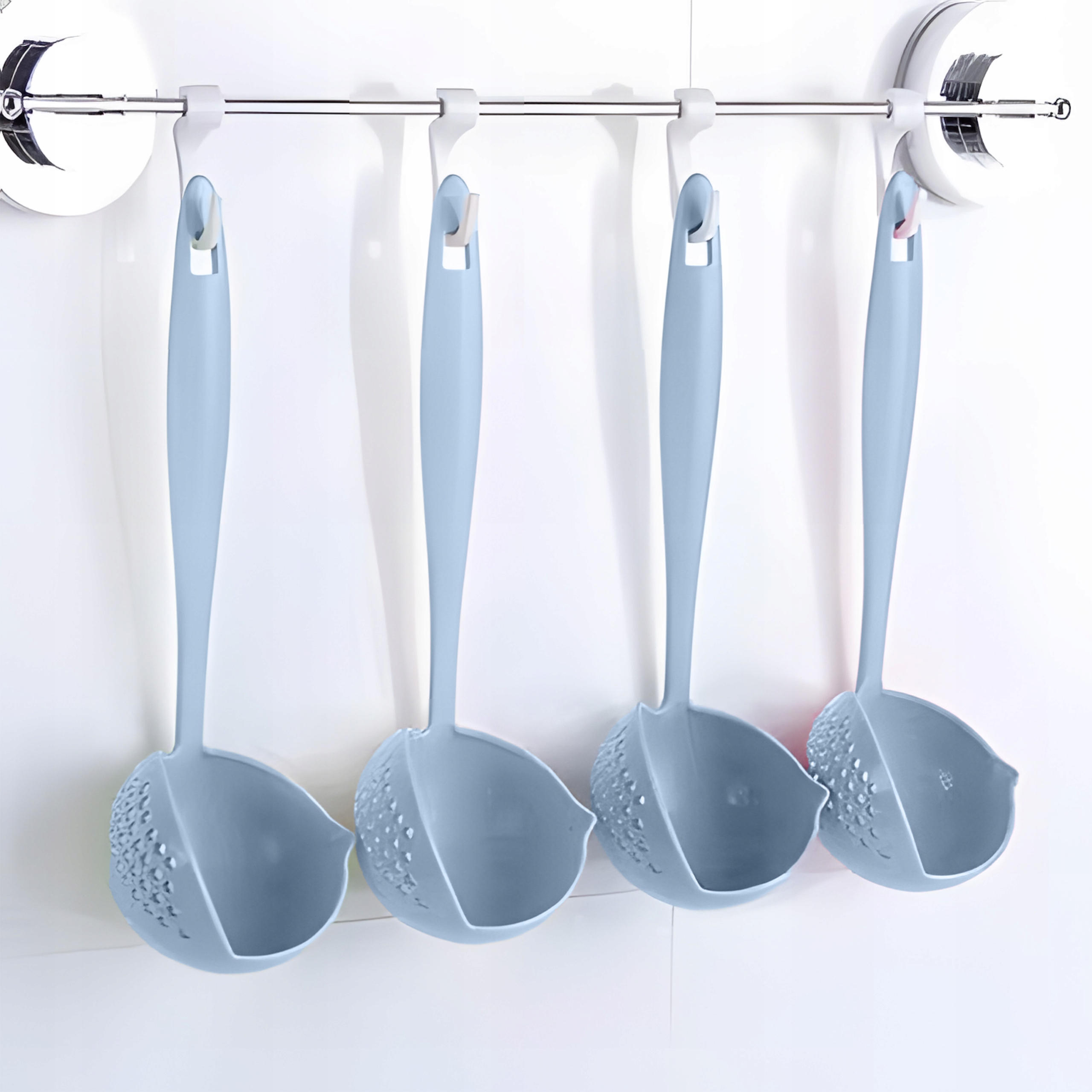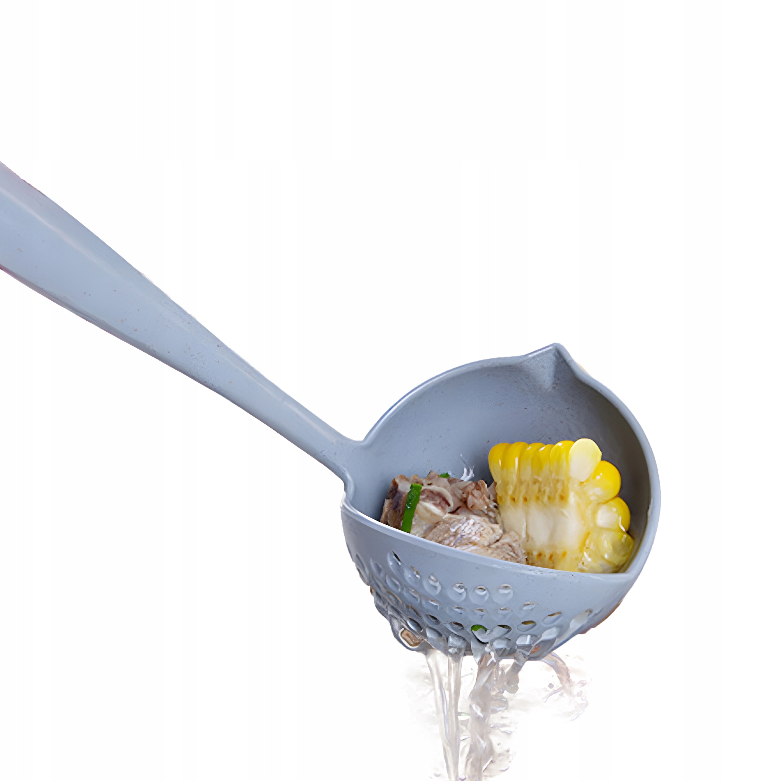 ✔️ Велика супова ложка та скребкова ложка 2в1 — це універсальні кухонні інструменти, які роблять проціджування їжі швидким і зручним. Їхній розмір дозволяє ефективно відокремлювати їжу від киплячої води чи жиру, мінімізуючи ризик опіків.
