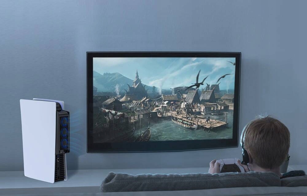 Однією з головних переваг цієї моделі є простота встановлення. Вентилятор охолодження Kiwi Home PX07-2 підключається безпосередньо до порту USB-A 3.0 консолі PS5, що робить установку швидкою та легкою. Пристрій можна використовувати як в портретній, так і в альбомній орієнтації. Крім того, вентилятор оснащений синіми світлодіодами, які не тільки вказують на правильну роботу, але й надають консолі сучасний вигляд.