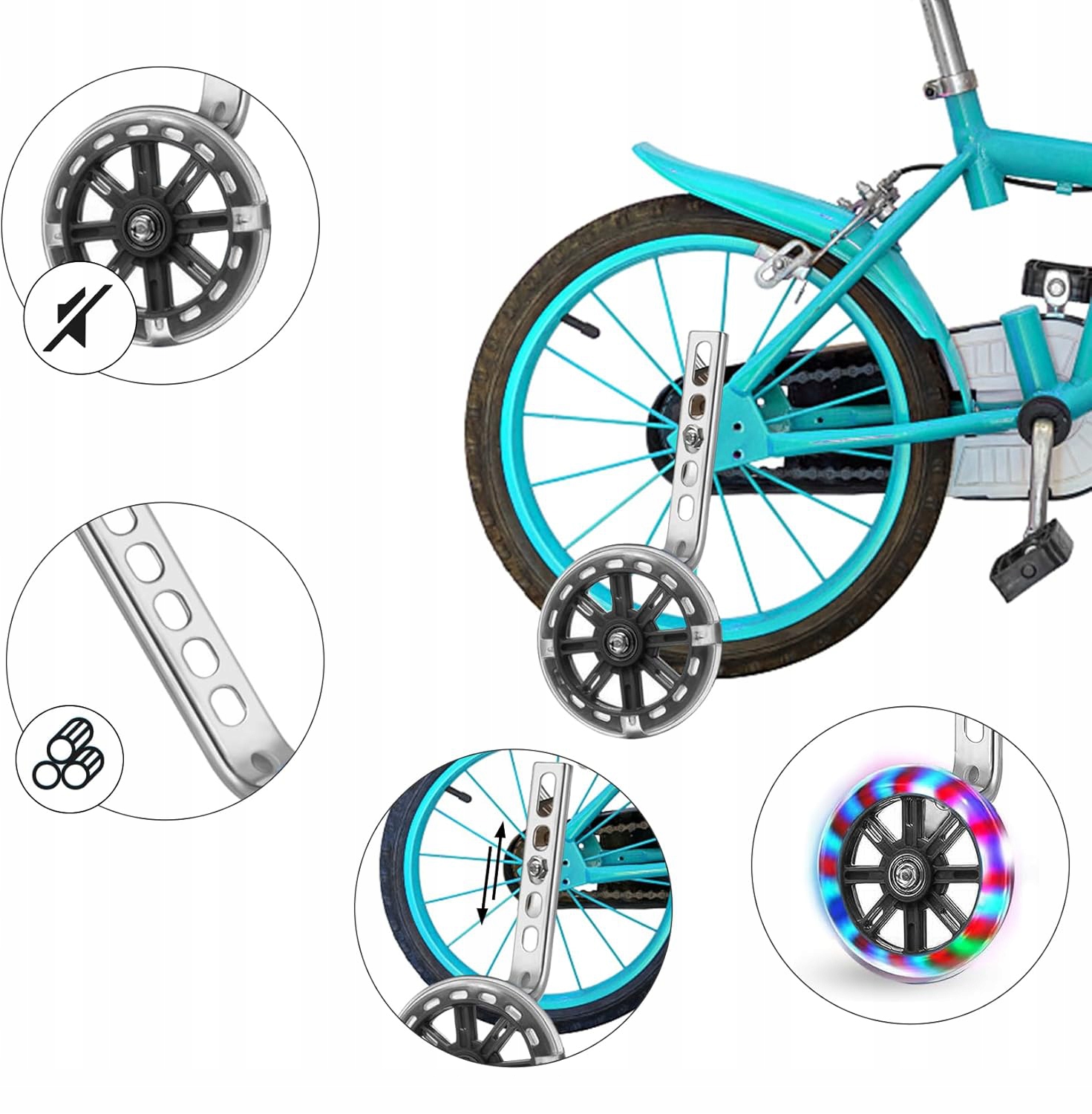 KÓŁKA BOCZNE DO ROWERU DZIECIĘCEGO KOŁA DO ROWERKA NAUKI JAZDY LED 12-20"