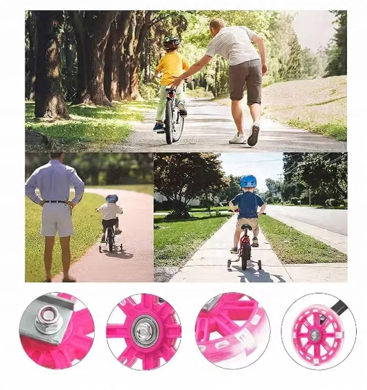 ⭐ Навчальні колеса світяться під час катання, що робить ваших дітей більш помітними та безпечнішими вночі чи в темно. Класний сяючий дизайн зацікавить дітей навчитися їздити на велосипеді.