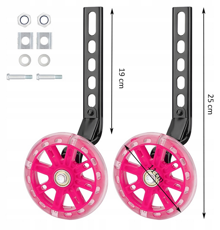 ➡️ Розроблено для дитячих велосипедів з діаметром коліс від 12"- 20". Вони допомагають навчитись утримувати рівновагупід час їзди на велосипеді.