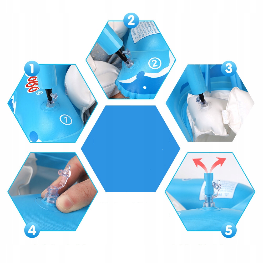 ПРИМІТКА: Використовуйте лише у воді, де діти знаходяться на їхній глибині та під наглядом дорослих. Кожен продукт пройшов газові випробування, і насичення повітрям становить близько 80%-90%, що є найбільш комфортним умовою. Не накачуйте надто, просто надуйте живіт на 50% і надуйте грудну подушку на 20%-30%.