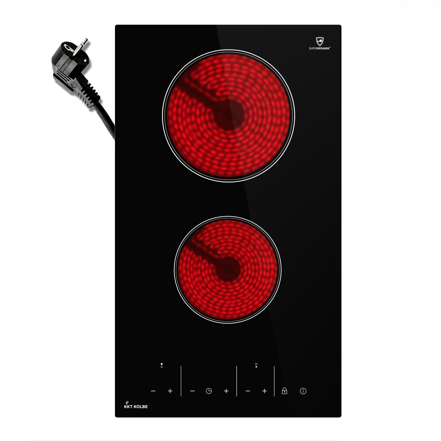 Класична нагрівальна плита KKT KOLBE переконує своєю якістю та функціональністю. Варильна поверхня має дві конфорки. Для кожної зони приготування можна встановити дев’ятиступеневу шкалу, що забезпечує ідеальну температуру для всіх страв. Поверхня з високоякісної склокераміки SUPERKERAMIK® забезпечує якість і безпеку, а також легкість очищення. Конфорки можна вимкнути за допомогою функції таймера. Світлодіодний дисплей відображає всю важливу інформацію з першого погляду. Вбудований датчик контролює температуру, щоб уникнути пошкодження. Варильна панель автоматично вимикається, якщо температура занадто висока.