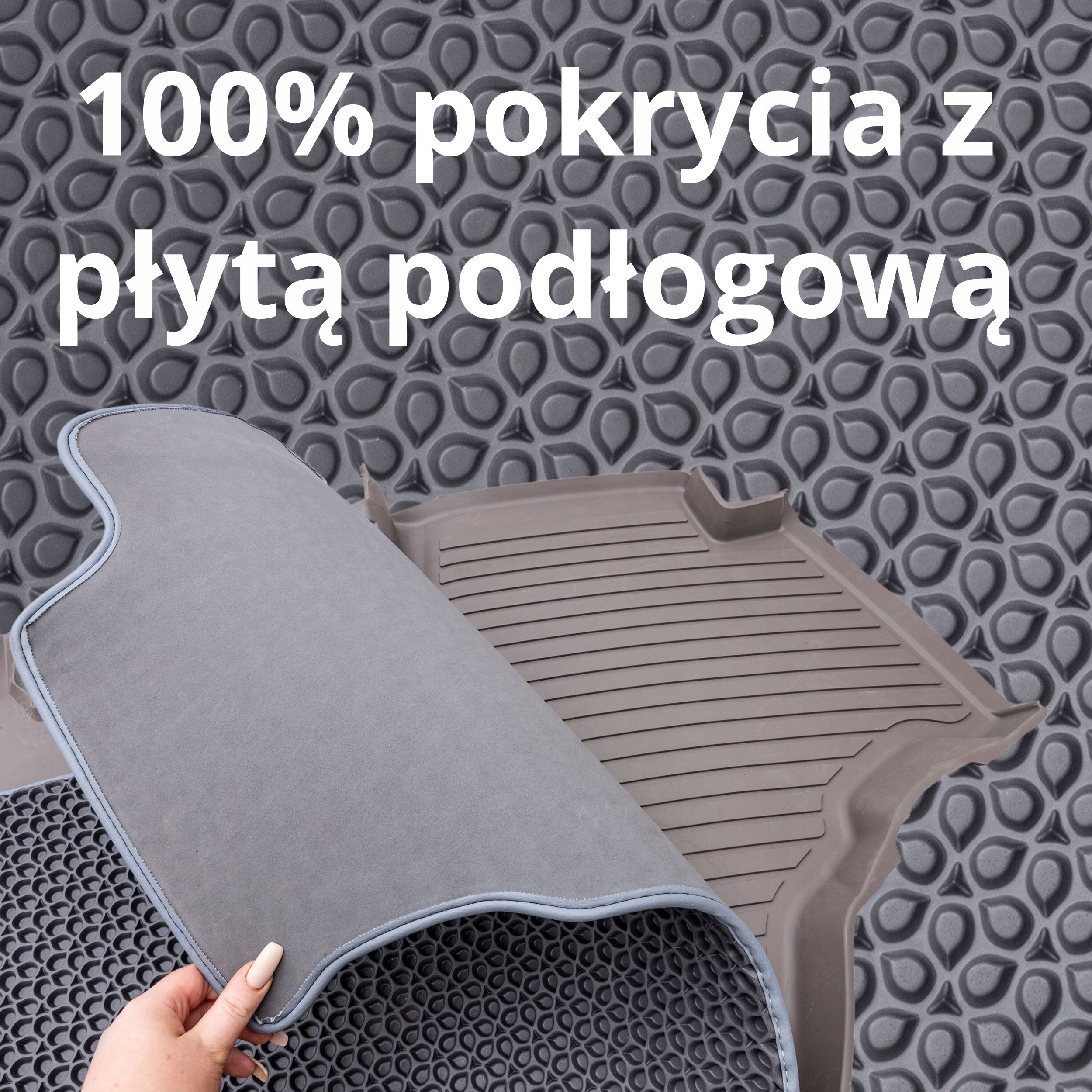 Сірий матеріал EVA з глибокою структурою (водокраплинний), вбирає велику кількість бруду, безпечний і без запаху.