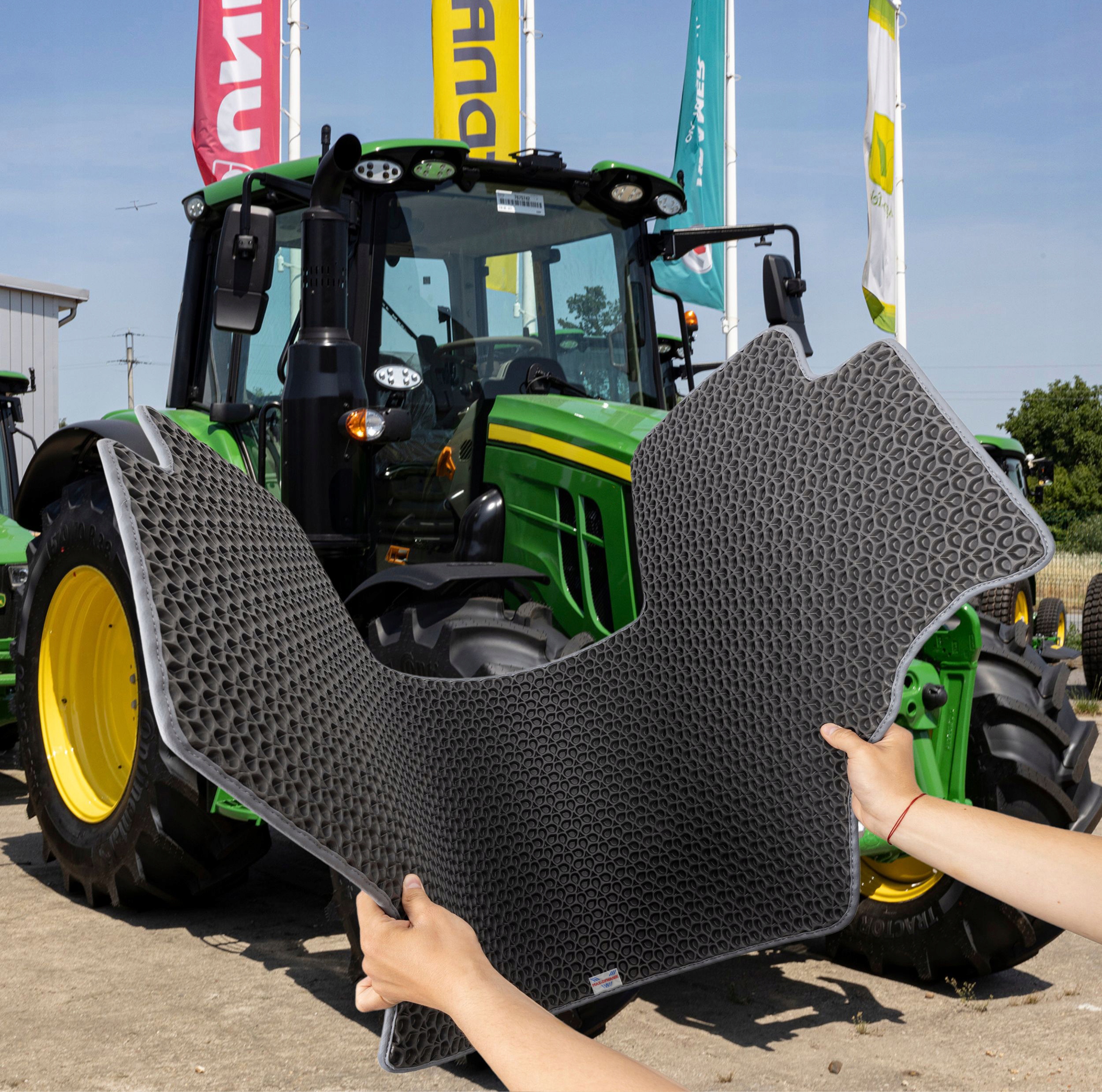 Килимки EVA є чудовим вибором для сільськогосподарської техніки, оскільки вони надзвичайно глибокі, що дозволяє ефективно збирати бруд і сміття. Вони легко чистяться, що важливо в складних сільськогосподарських умовах, дозволяють швидко видаляти бруд і воду. Завдяки ідеальному пристосуванню до сільськогосподарських машин вони захищають підлогу від пошкоджень і зовнішніх факторів.
