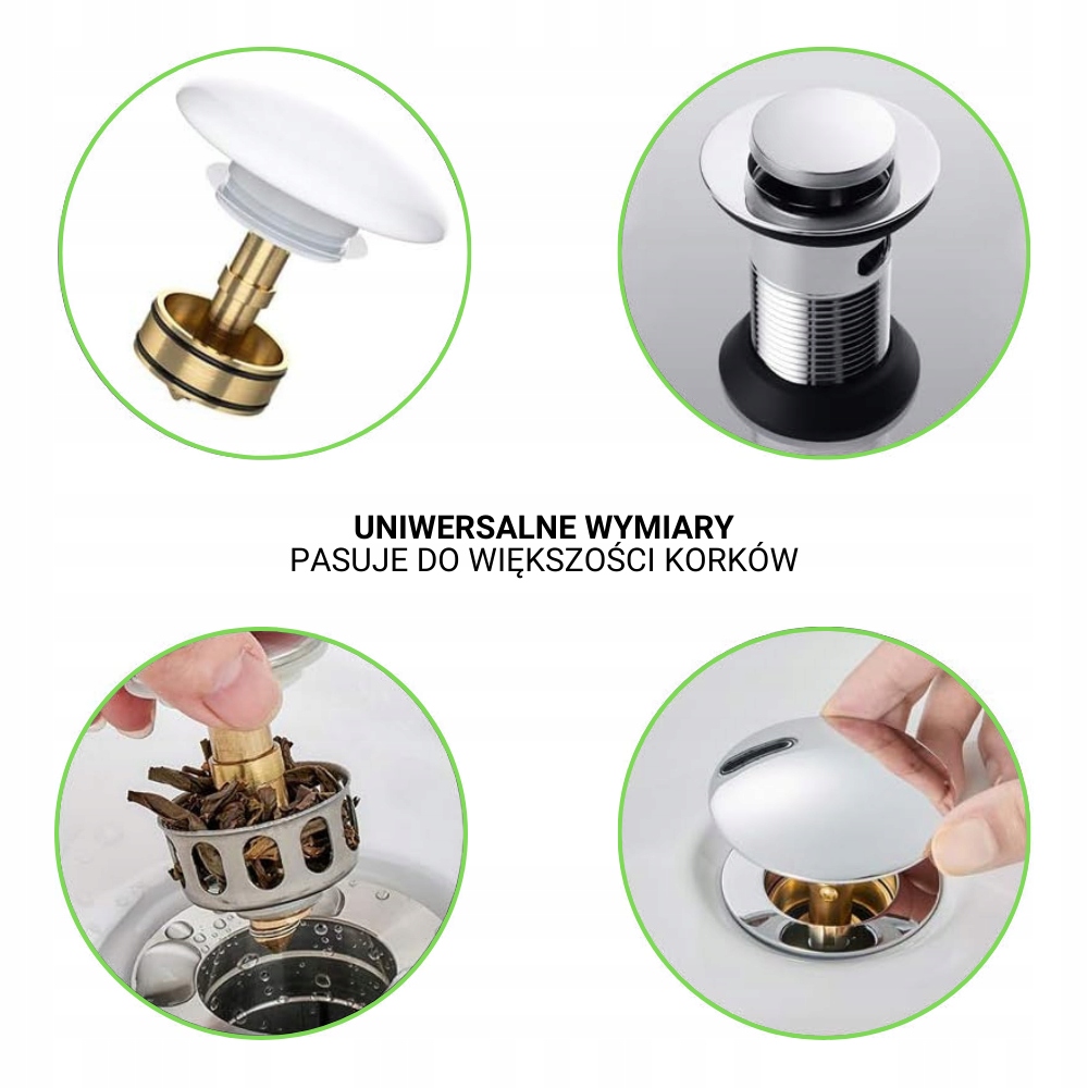 Продукт має стандартні розміри і адаптується до більшості мийки, ванни та пробки для душу - як з невеликою, так і з великою вилкою.