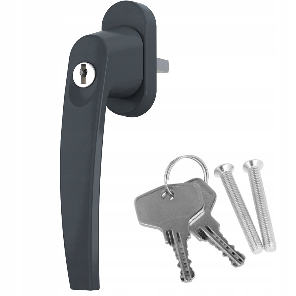 KLAMKA OKNA OKIENNA Z ZAMKIEM +2 KLUCZE GRAFIT