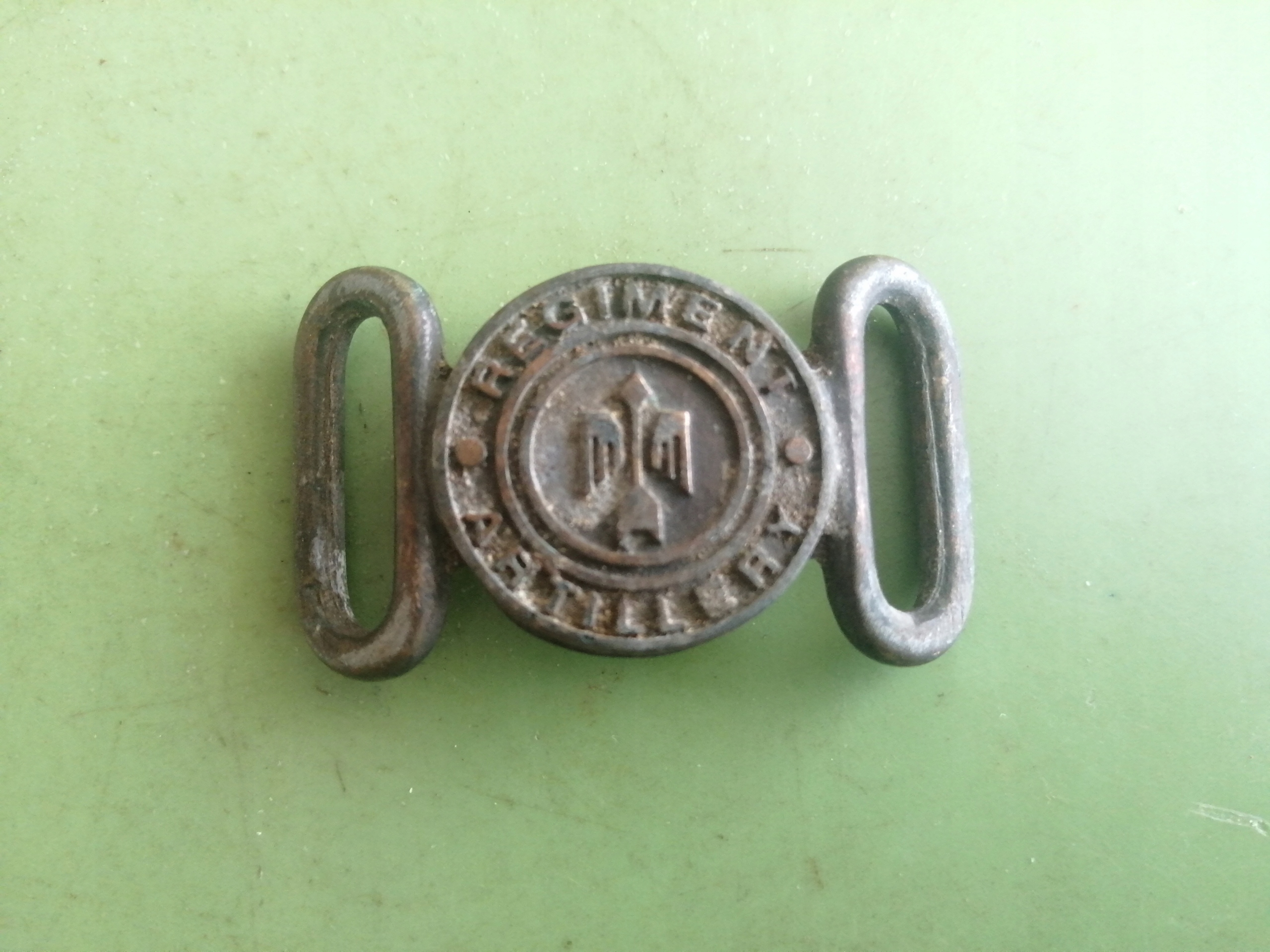 Я рекомендую стару військову пряжку ременя британського артилерійського полку. Розміри: довжина 5 см, ширина 3 см.