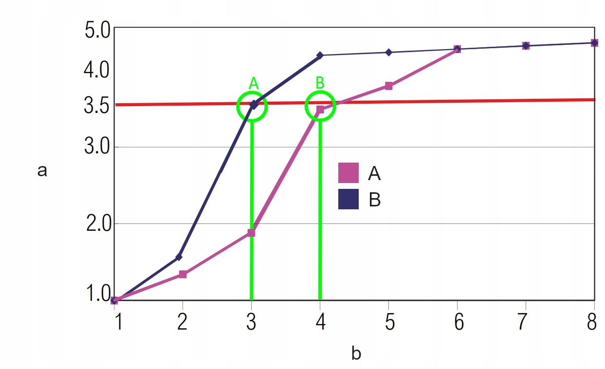 Зелені точки A і B на кривій позначають відкрите та закрите положення клапанів.