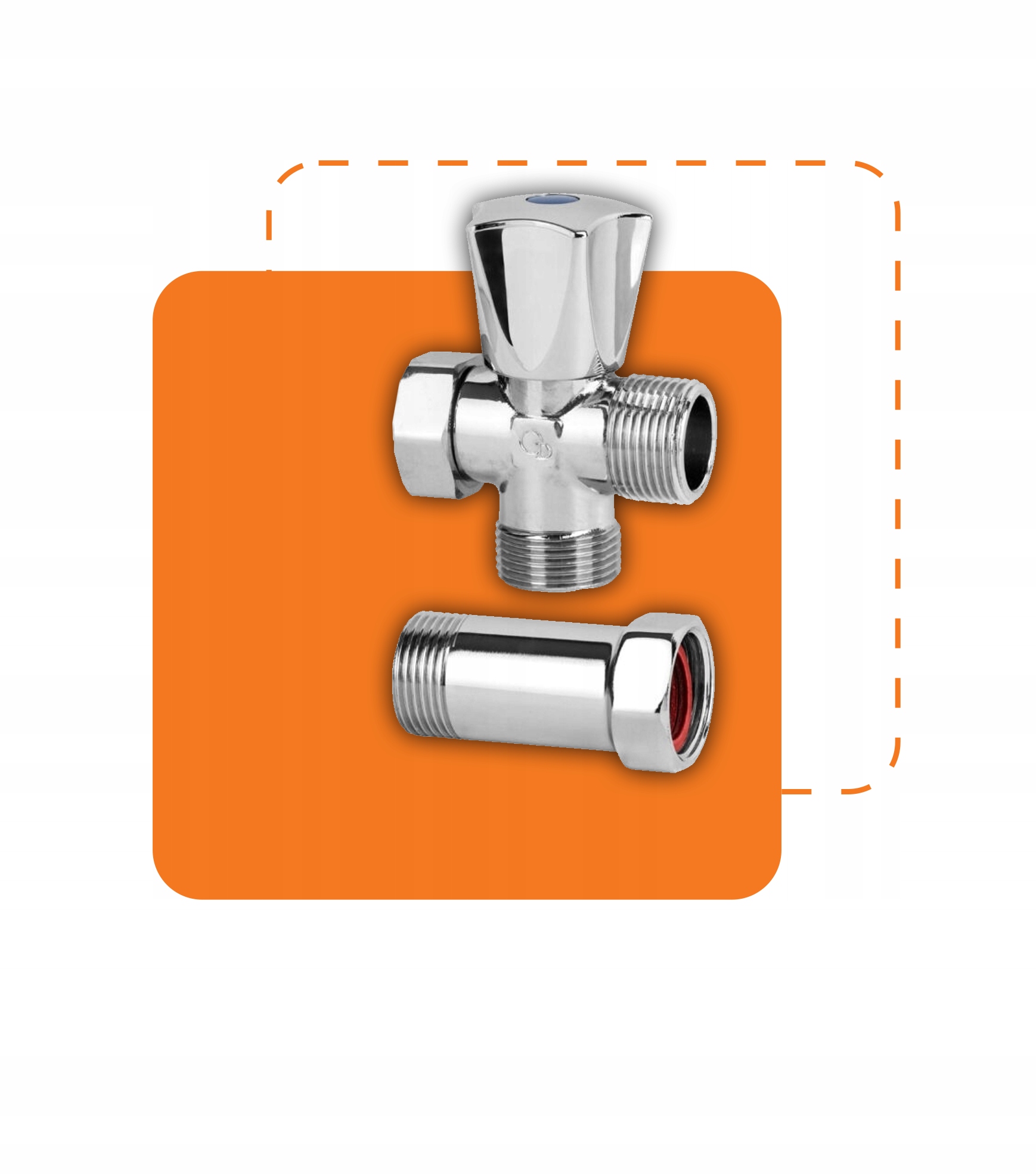 - Тип: Запірний клапан, 3-ходова кутова тарілка з розширенням хромована