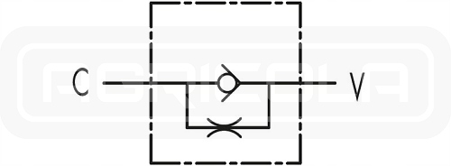 - З'єднання: потік від C до V регулюється, від V до C вільний після перевищення тиску 0,5 бар.