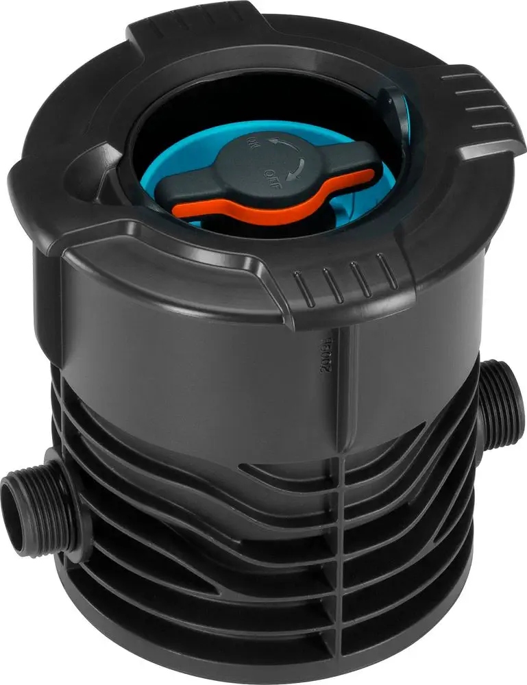 Клапан Gardena Регулювання та закриття клапана - Елемент Sprinklersystem Gardena - використовується для вручну та закриття окремих прольотів або цілих груп. Потік води можна регулювати плавно або повністю закрити. Після відкриття верхня обкладинка ховається всередині, не будучи перешкодою під час сконення газону. Широкий, виступаючий край запобігає траві в кришці. Ситечковий ситечко запобігає забрудненню клапана після відкриття кришки. Клапан, що регулюється та закриває, оснащений зовнішньою ниткою 3/4 ".