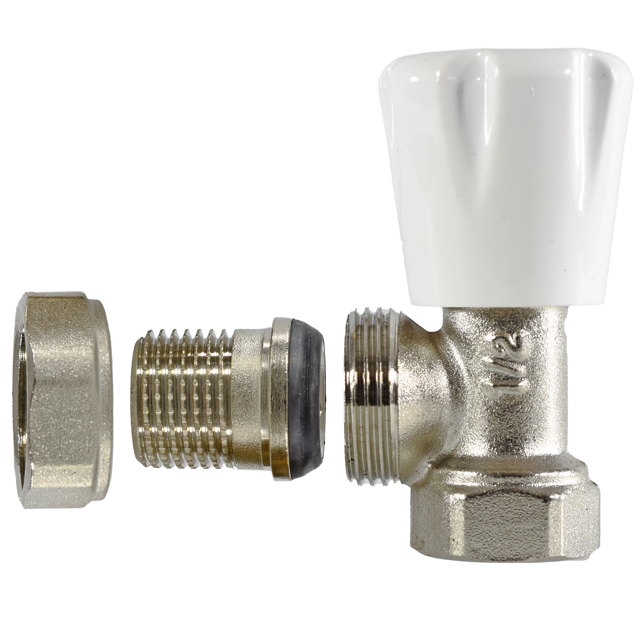 КЛАПАН ПОДАЧИ РАДІАТОРА 1/2" КУТОВИЙ, БІЛИЙ, НІКЕЛЬОВАНИЙ, ДЛЯ РАДІАТОРА, МІЦНИЙ